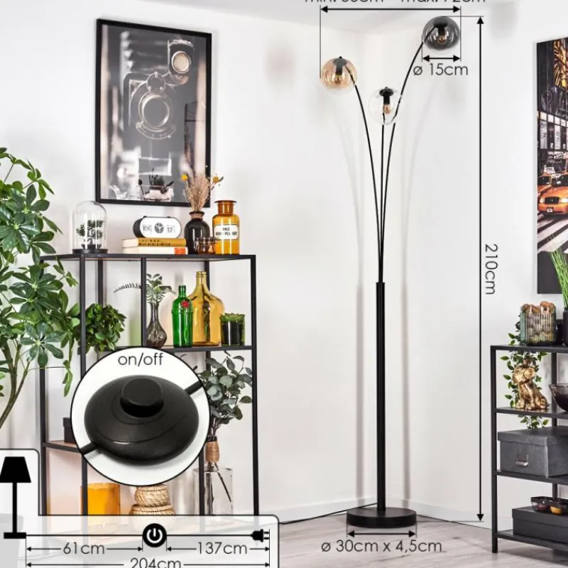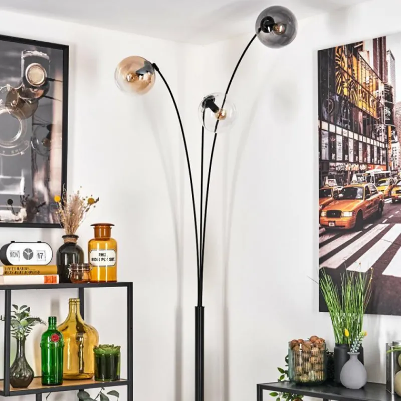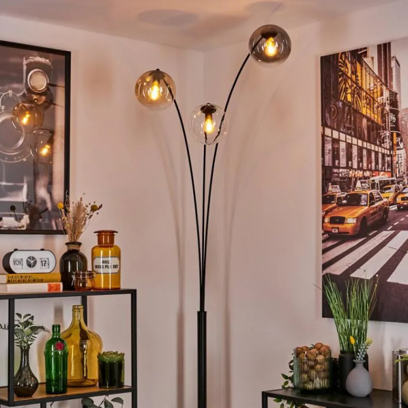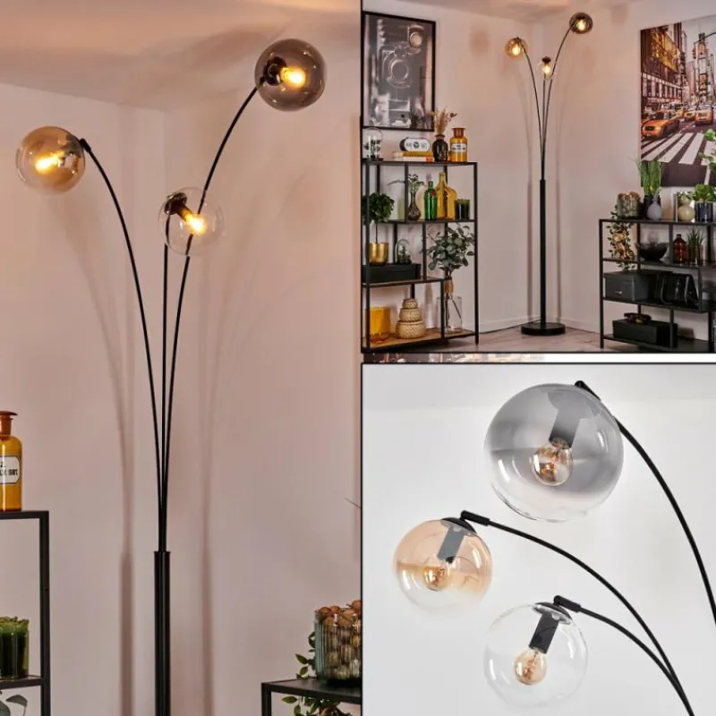 hofstein Gastor Lampadaire Ambre, Clair, Fumé, 3 lumières