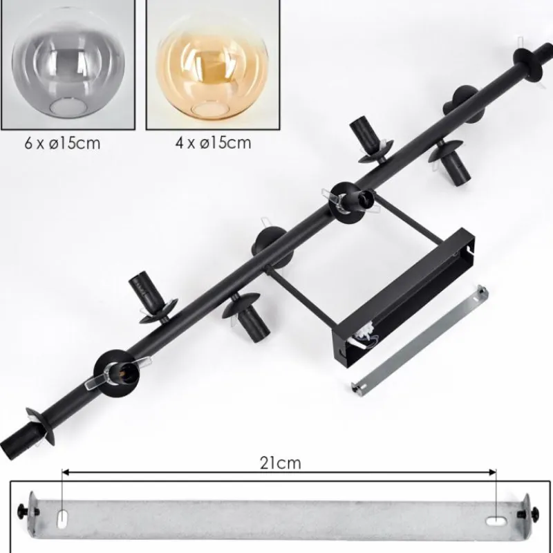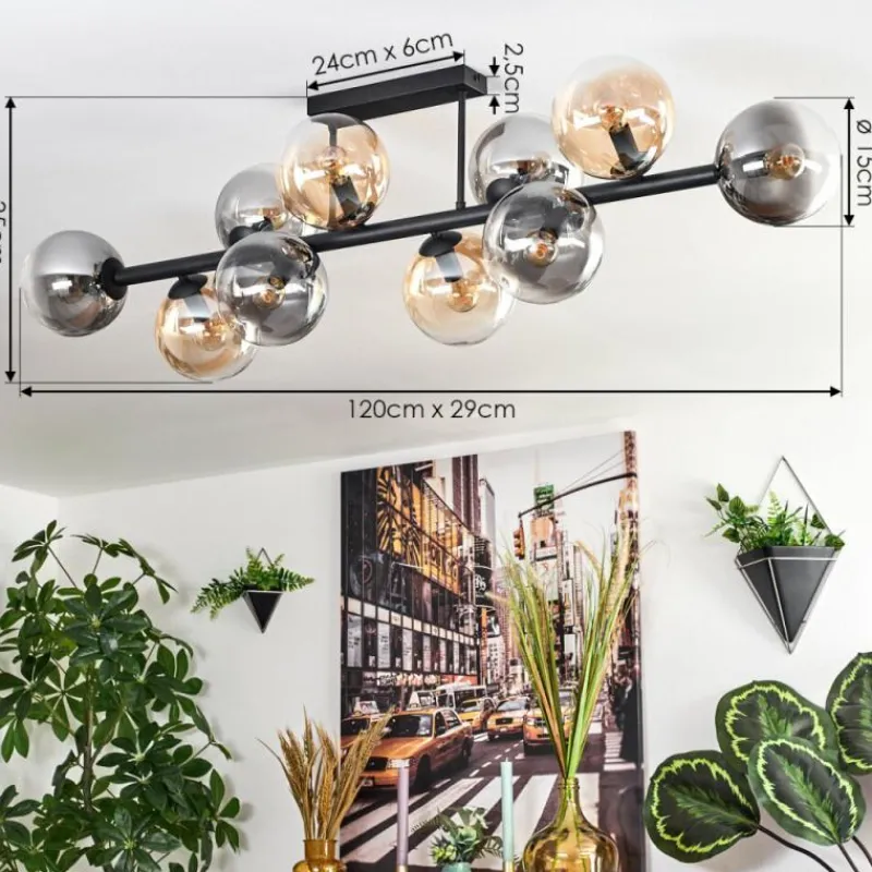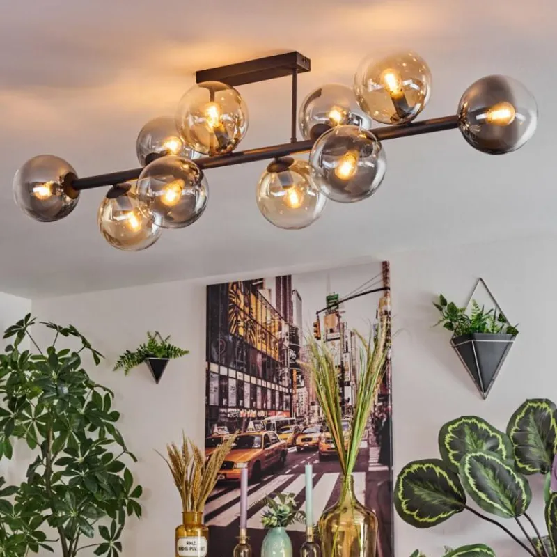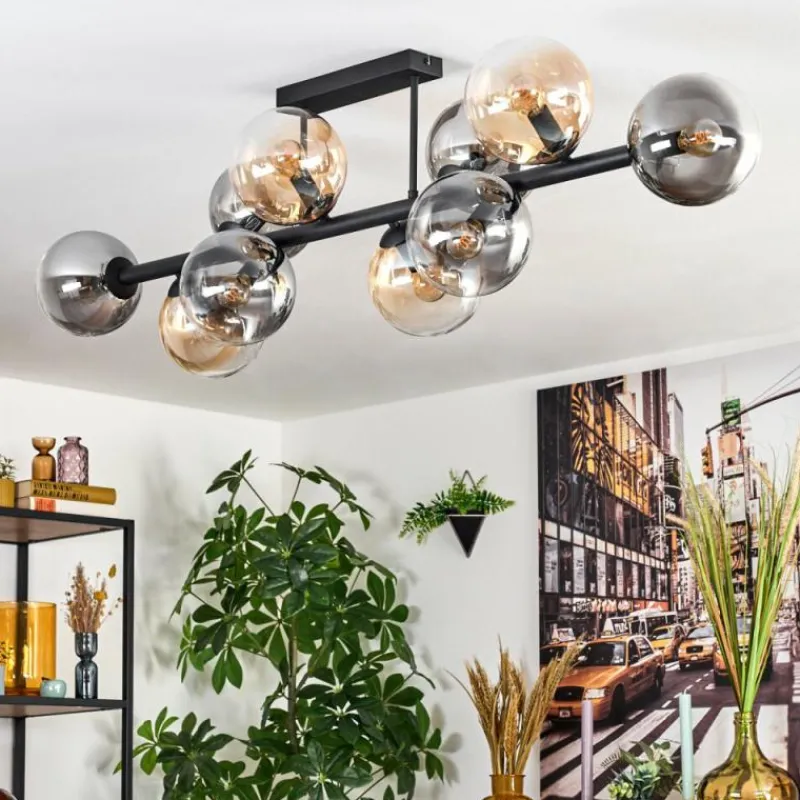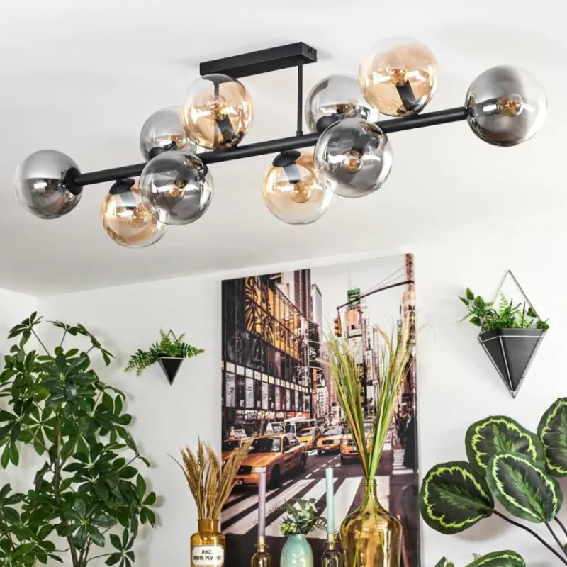 hofstein Gastor Plafonnier, Boule lumineuse Ambre, Clair, Fumé, 10 lumières