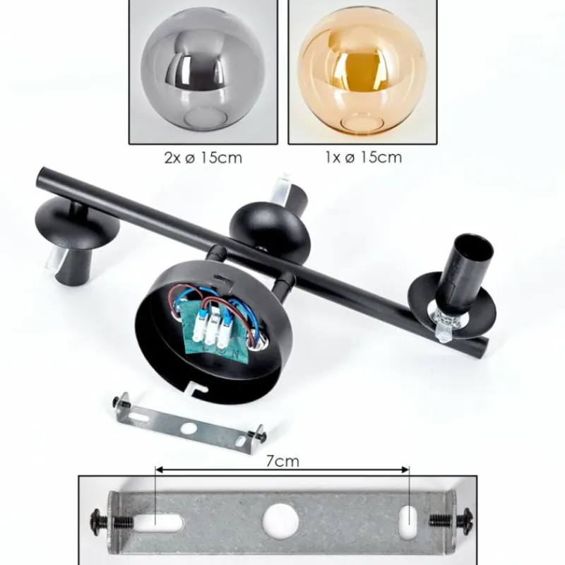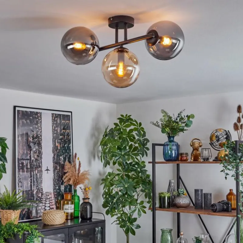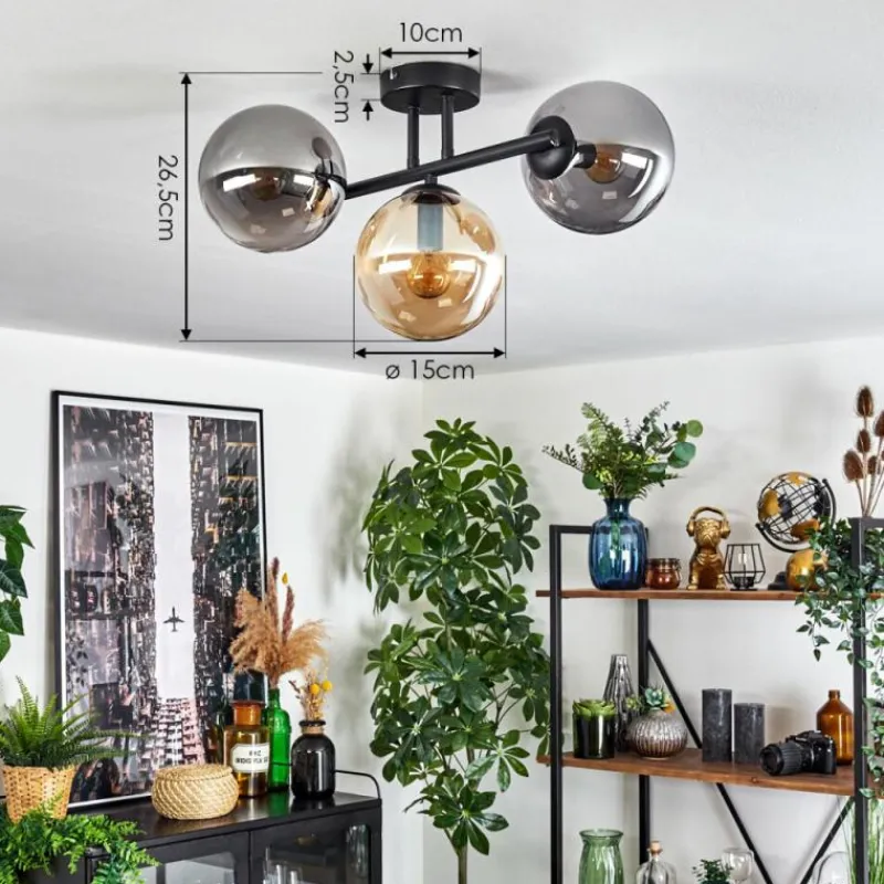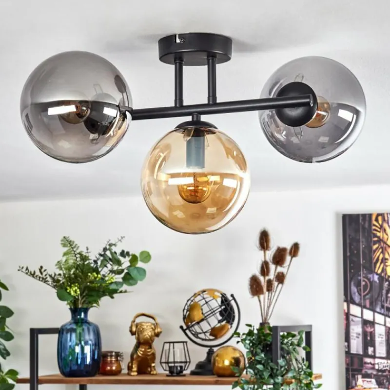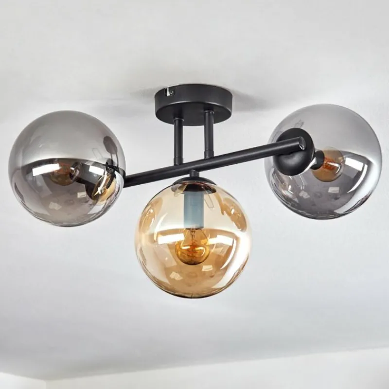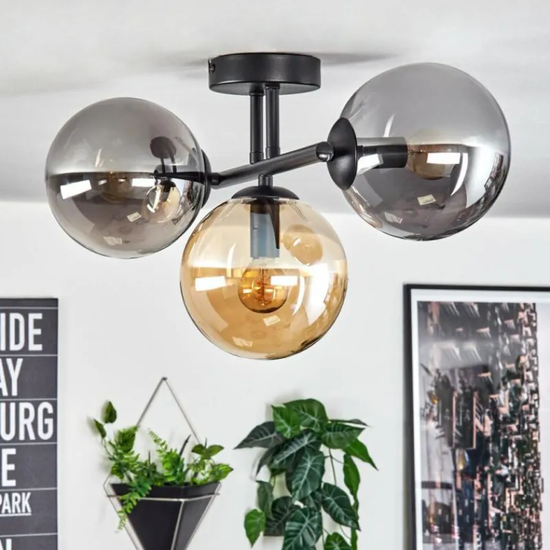 hofstein Gastor Plafonnier, Boule lumineuse Ambre, Fumé, 3 lumières