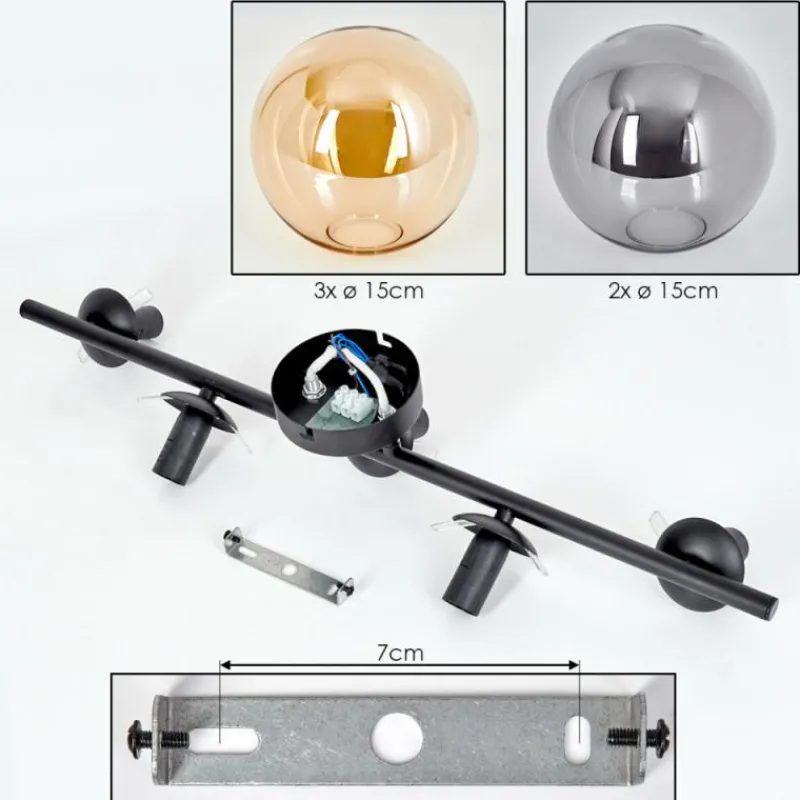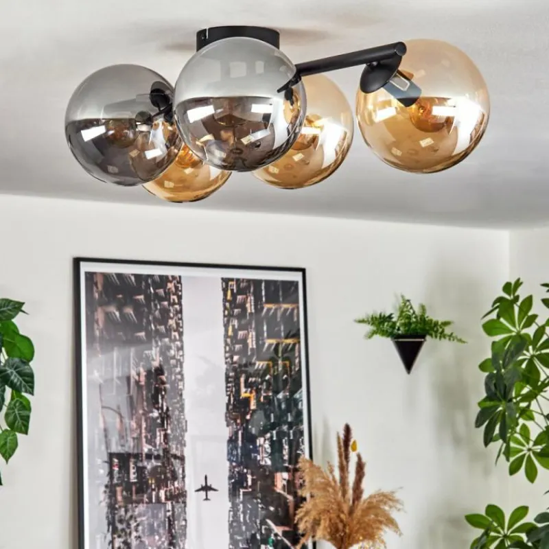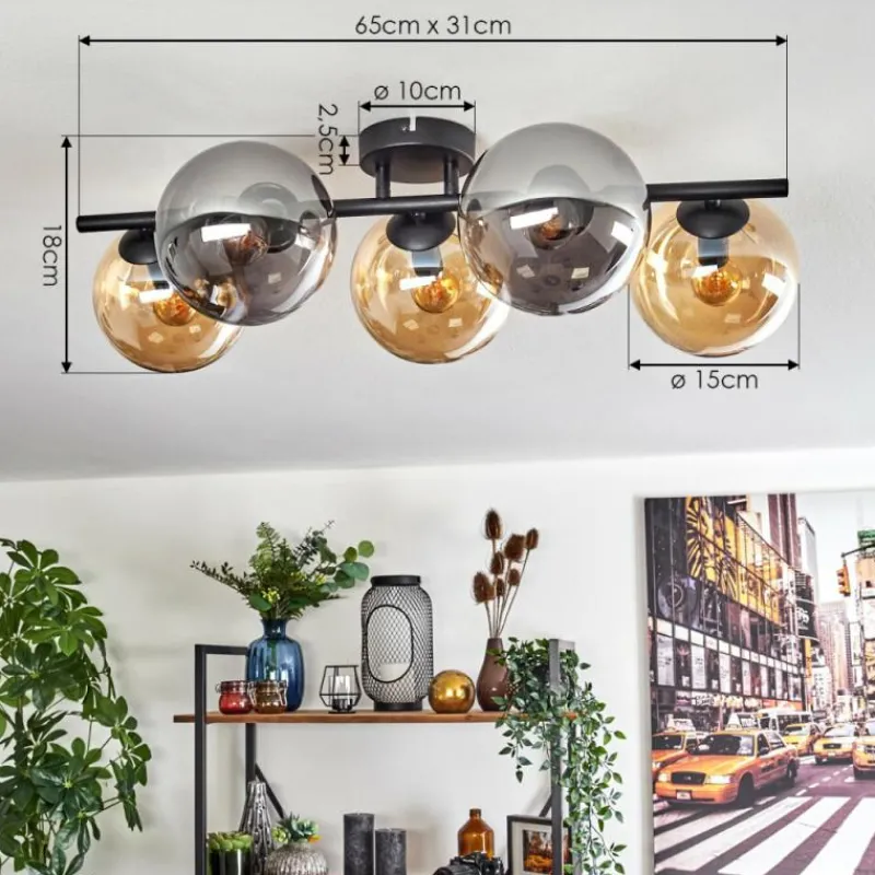 hofstein Gastor Plafonnier, Boule lumineuse Ambre, Fumé, 5 lumières