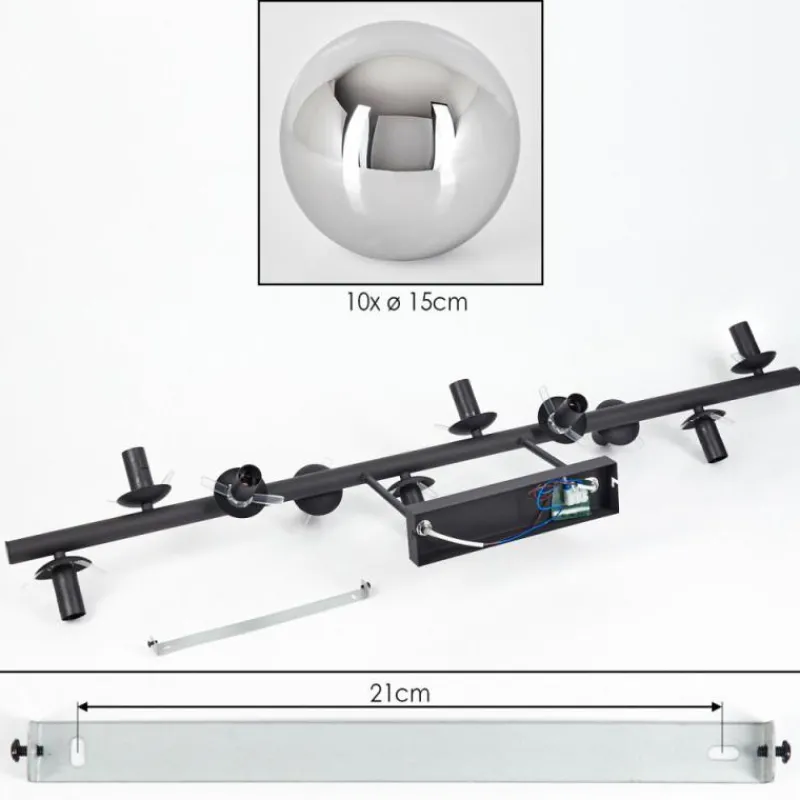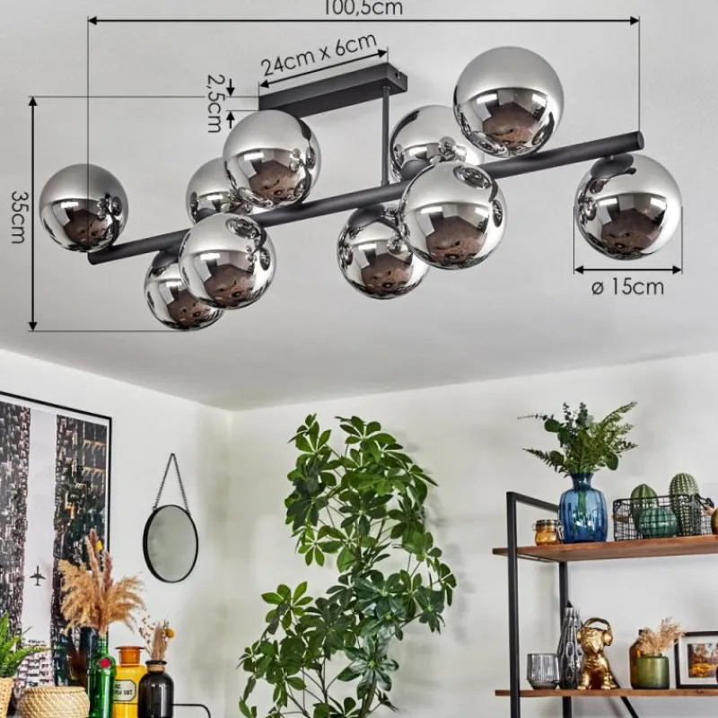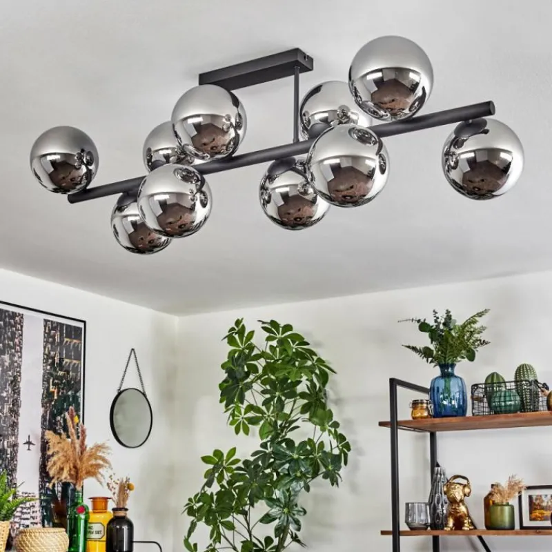hofstein Gastor Plafonnier, Boule lumineuse Chrome, Fumé, 10 lumières