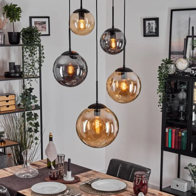hofstein Gastor Suspension, Boule lumineuse 45 cm Noir, 5 lumières