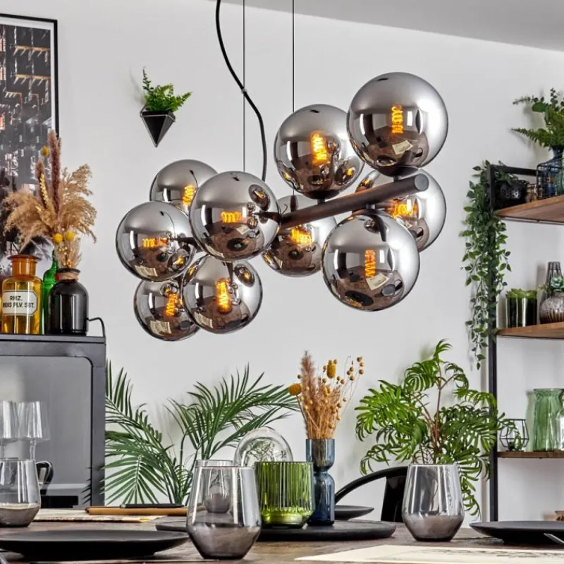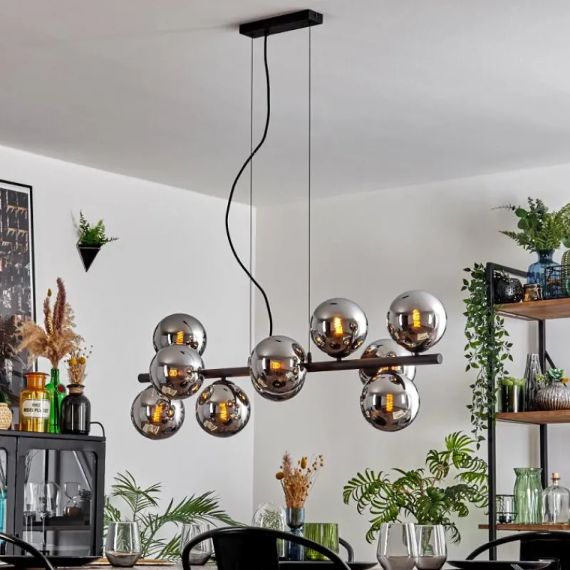 hofstein Gastor Suspension, Boule lumineuse, Suspension Chrome, Fumé, 10 lumières