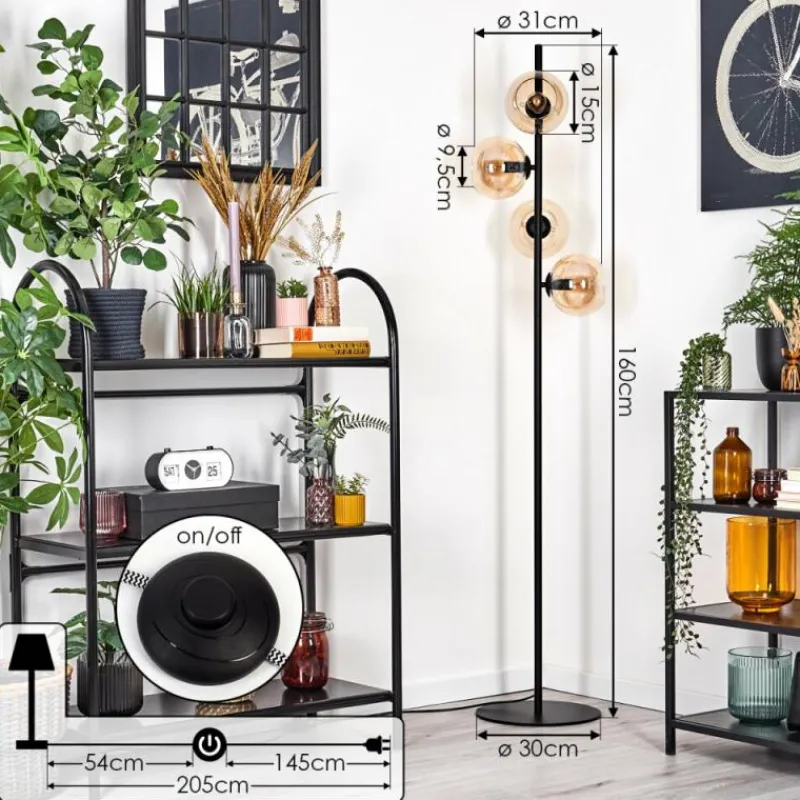 hofstein Koyoto Lampadaire 31 cm Ambre, 4 lumières