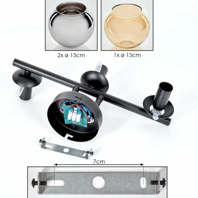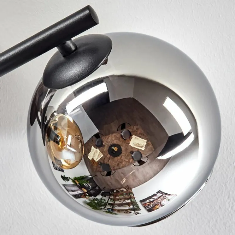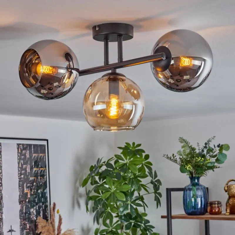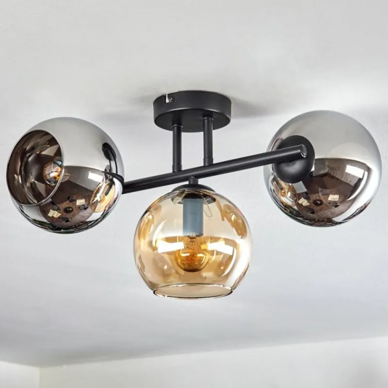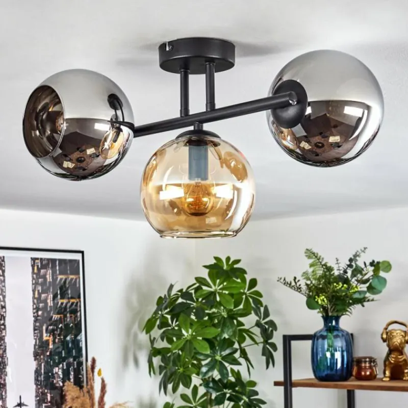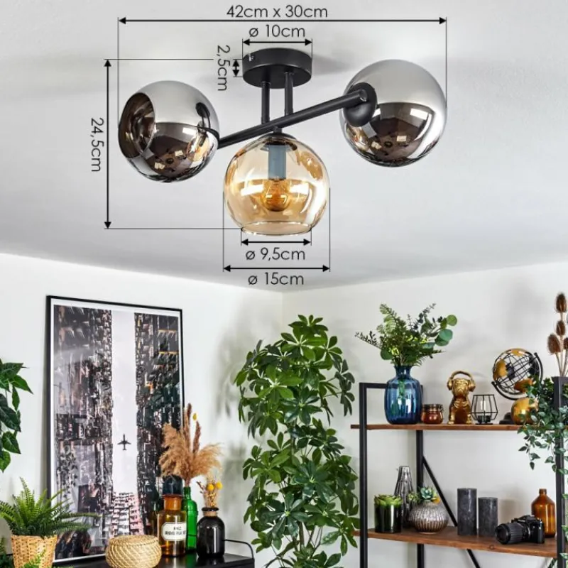 hofstein Koyoto Plafonnier, Boule lumineuse Ambre, Chrome, Fumé, 3 lumières