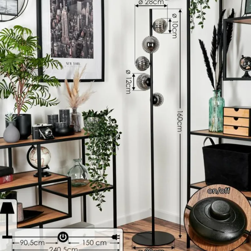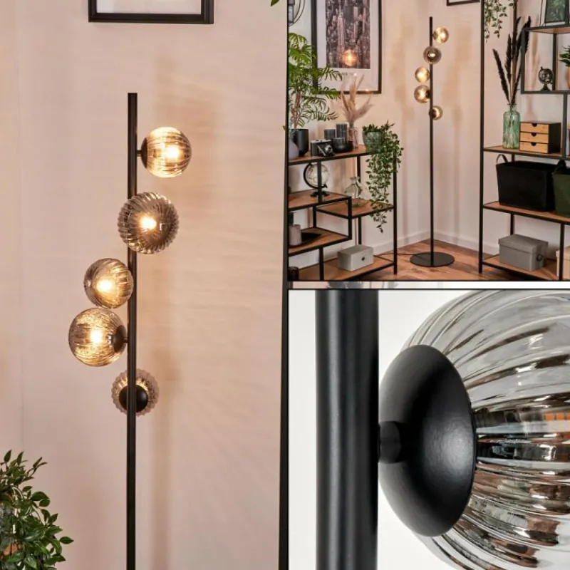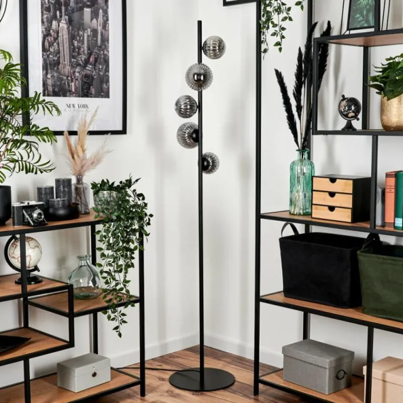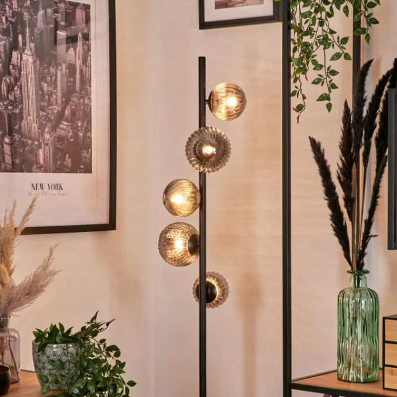 hofstein Lampadaire – Verre 10 cm, 12 cm Remaisnil Fumé, 5 lumières