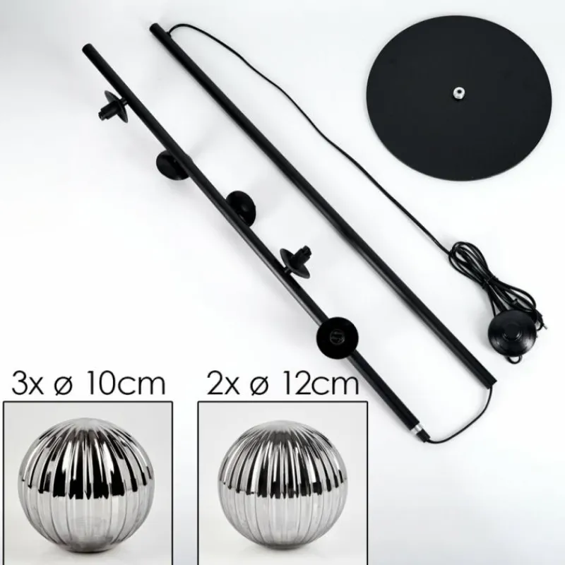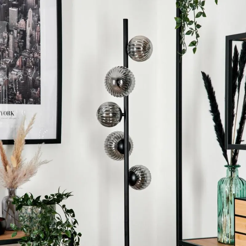 hofstein Lampadaire - Verre 10 cm, 12 cm Remaisnil Fumé, 5 lumières
