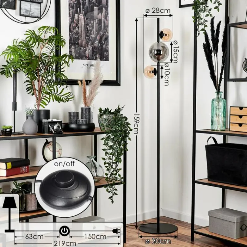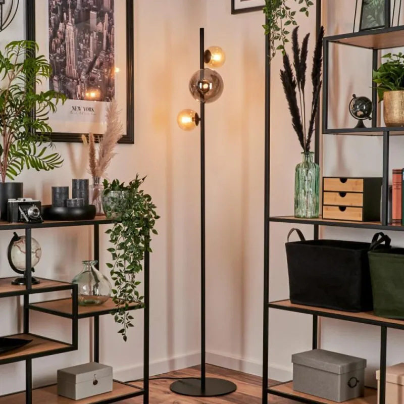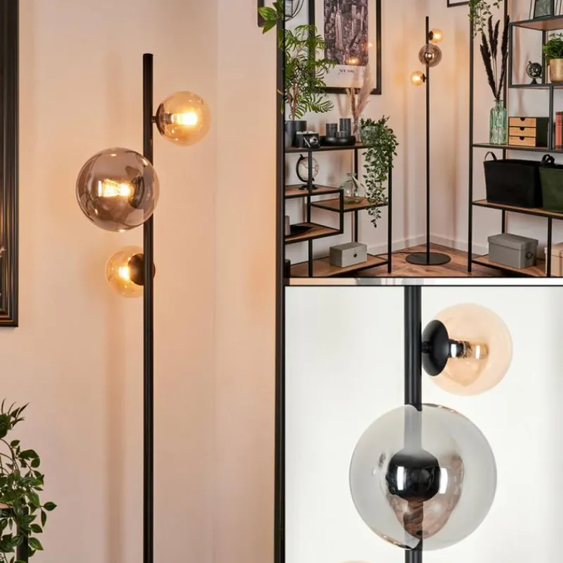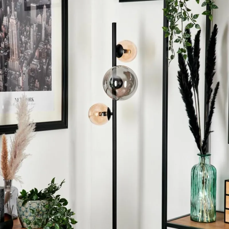 hofstein Lampadaire – Verre 10 cm, 15 cm Remaisnil Ambre, Fumé, 3 lumières