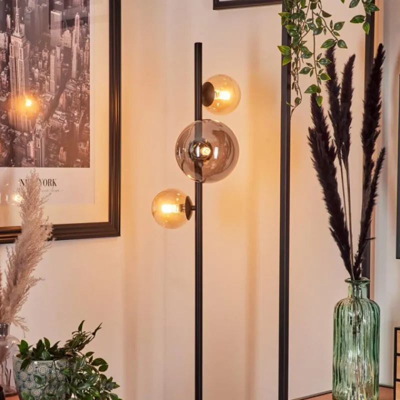 hofstein Lampadaire - Verre 10 cm, 15 cm Remaisnil Ambre, Fumé, 3 lumières