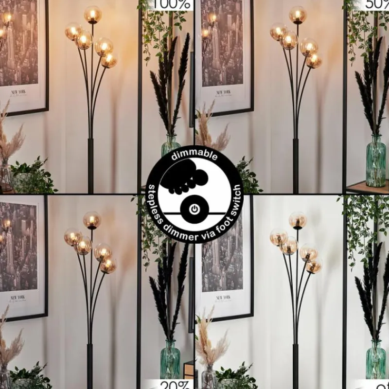 hofstein Lampadaire - Verre 10 cm Bernado Ambre, Clair, 5 lumières