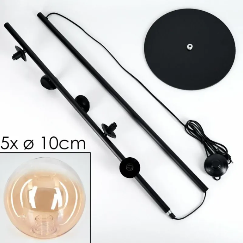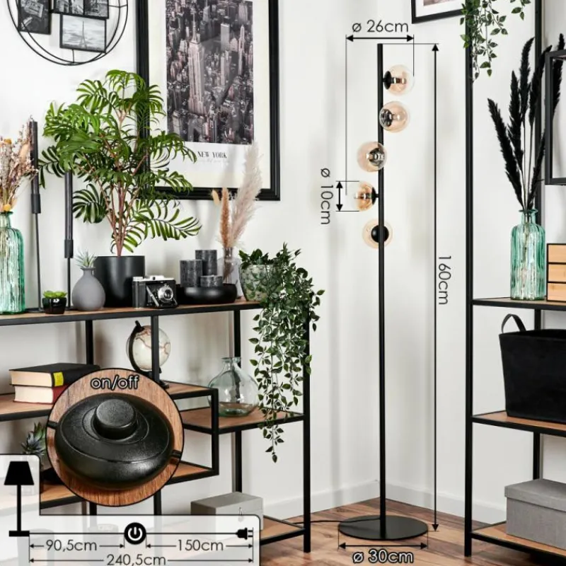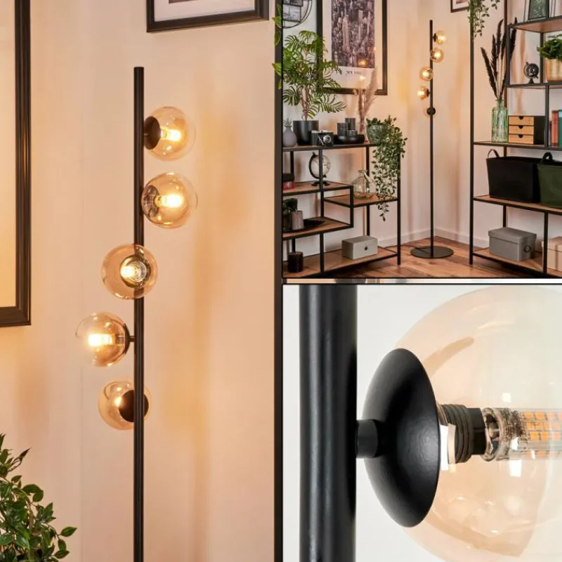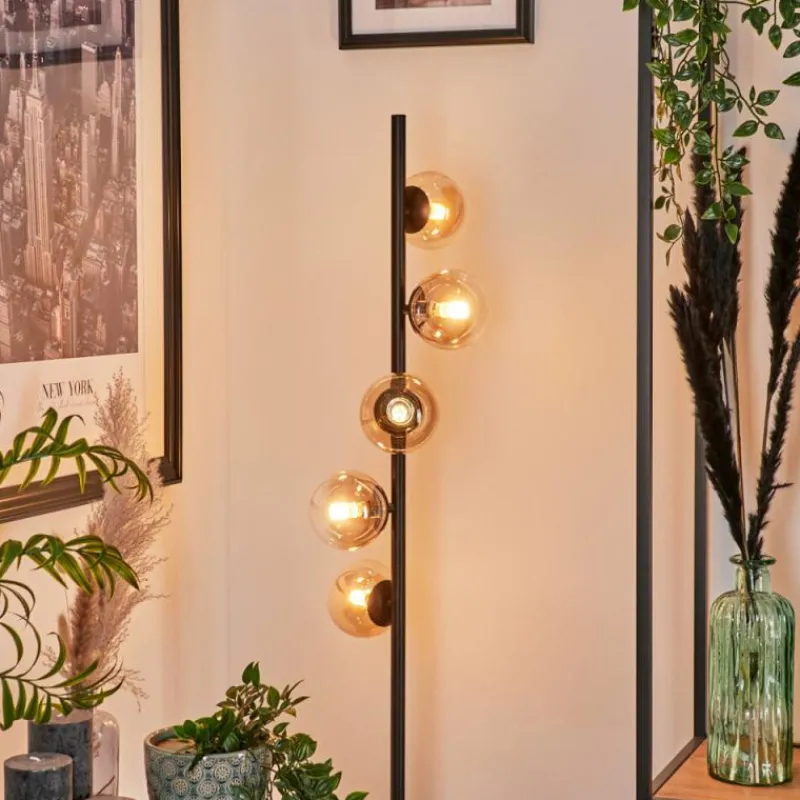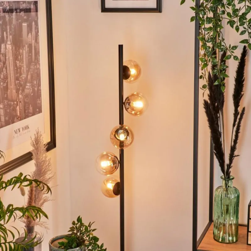 hofstein Lampadaire – Verre 10 cm Remaisnil Ambre, Clair, 5 lumières