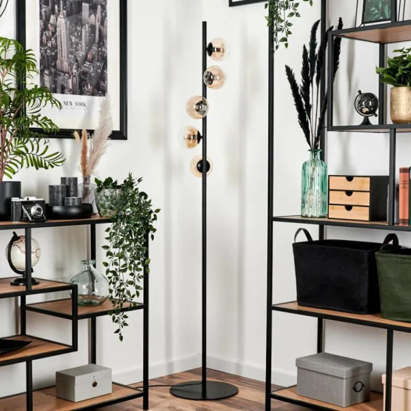 hofstein Lampadaire - Verre 10 cm Remaisnil Ambre, Clair, 5 lumières