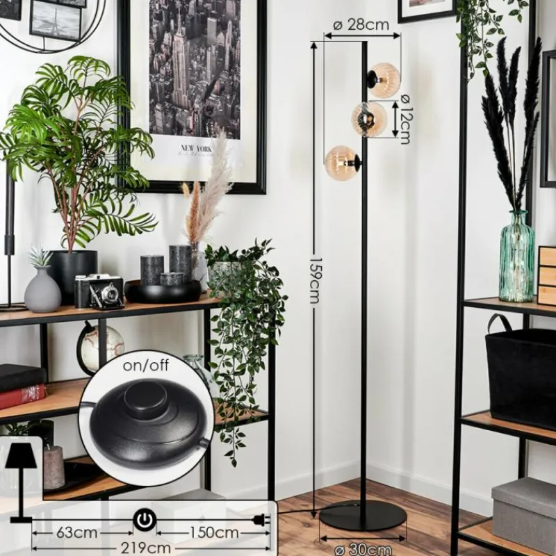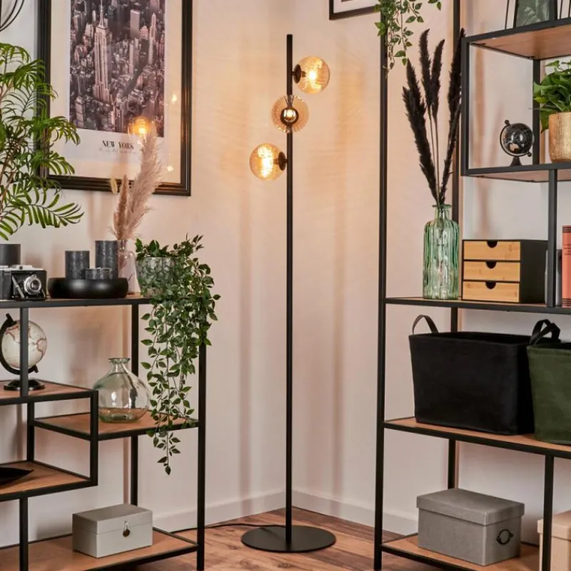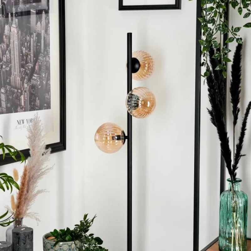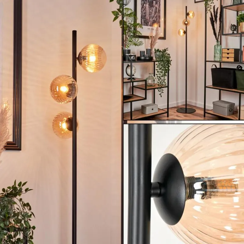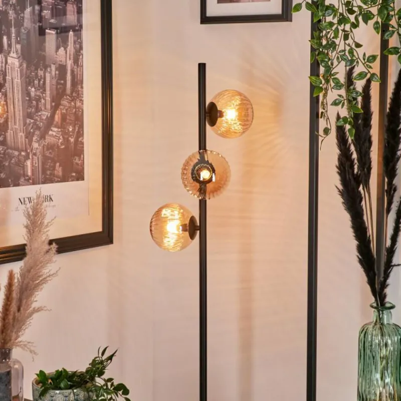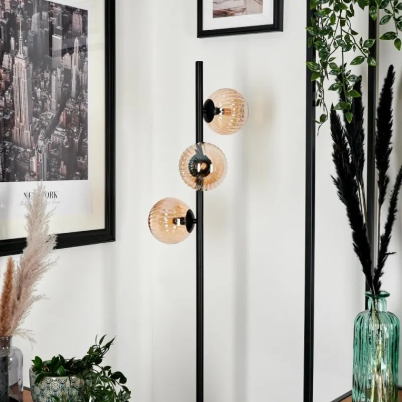 hofstein Lampadaire – Verre 12 cm Remaisnil Ambre, 3 lumières