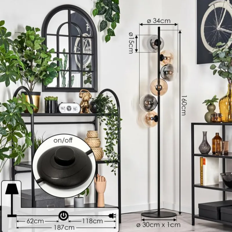 hofstein Lampadaire – Verre 15 cm Gastor Ambre, Clair, Fumé, 6 lumières
