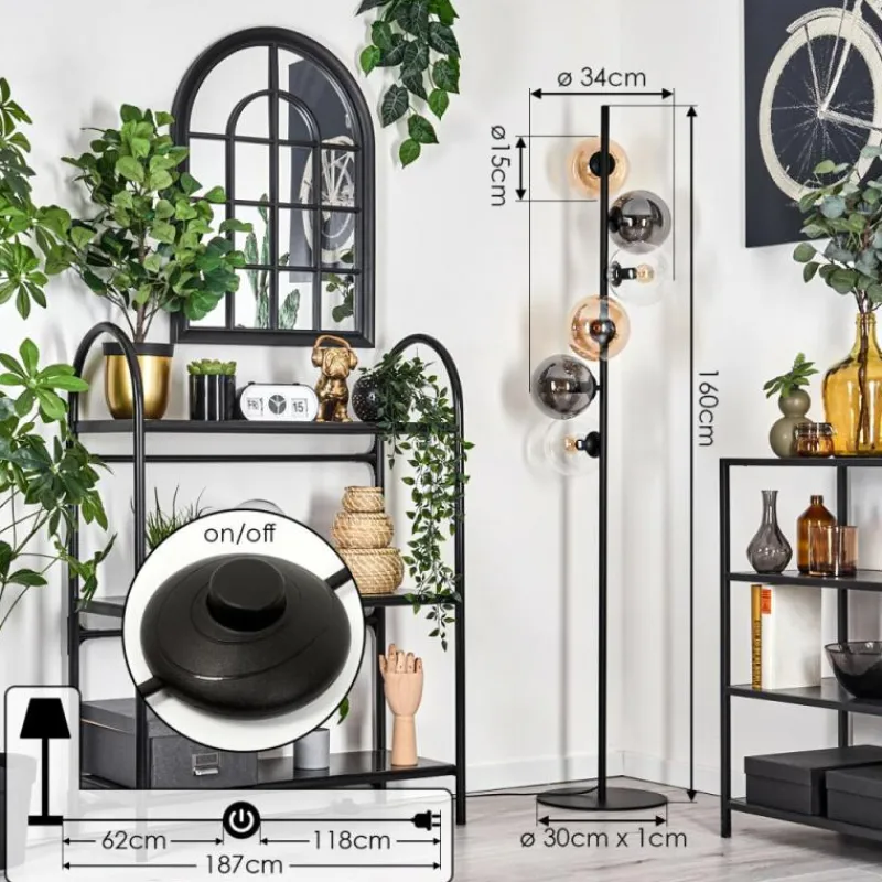 hofstein Lampadaire – Verre 15 cm Gastor Ambre, Clair, Fumé, 6 lumières