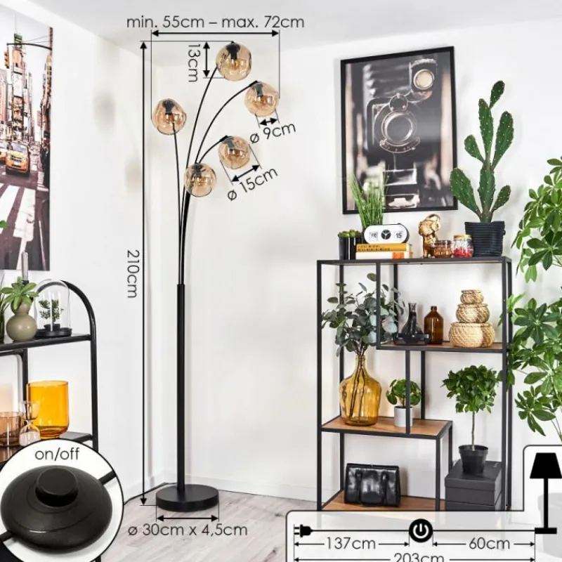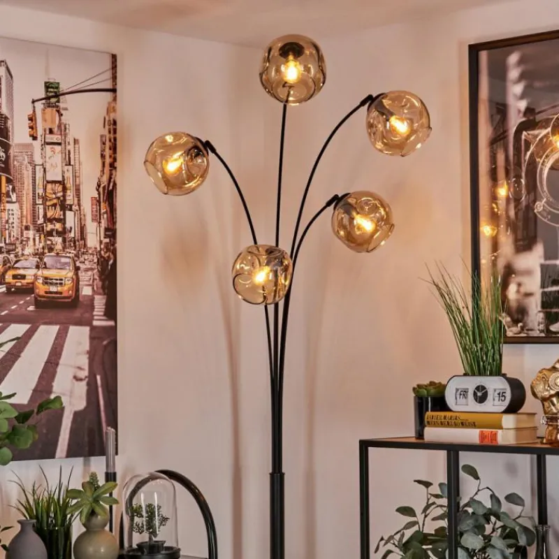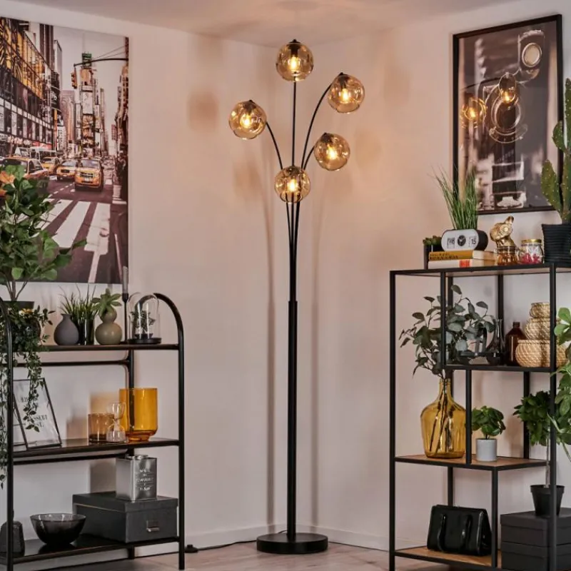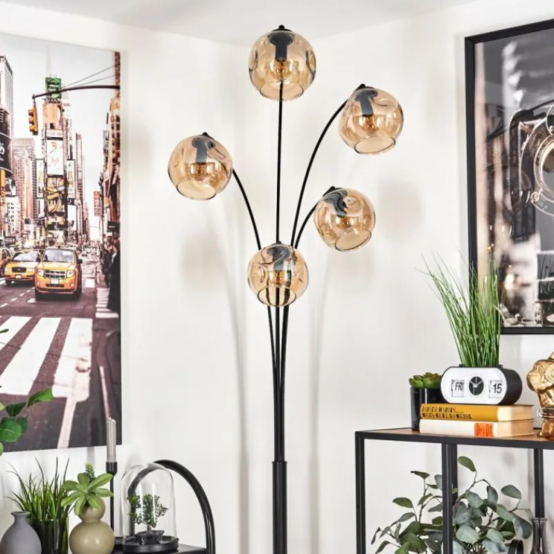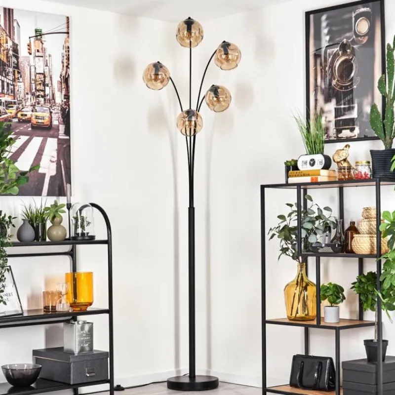 hofstein Lampadaire – Verre 15 cm Ripoll Ambre, 5 lumières