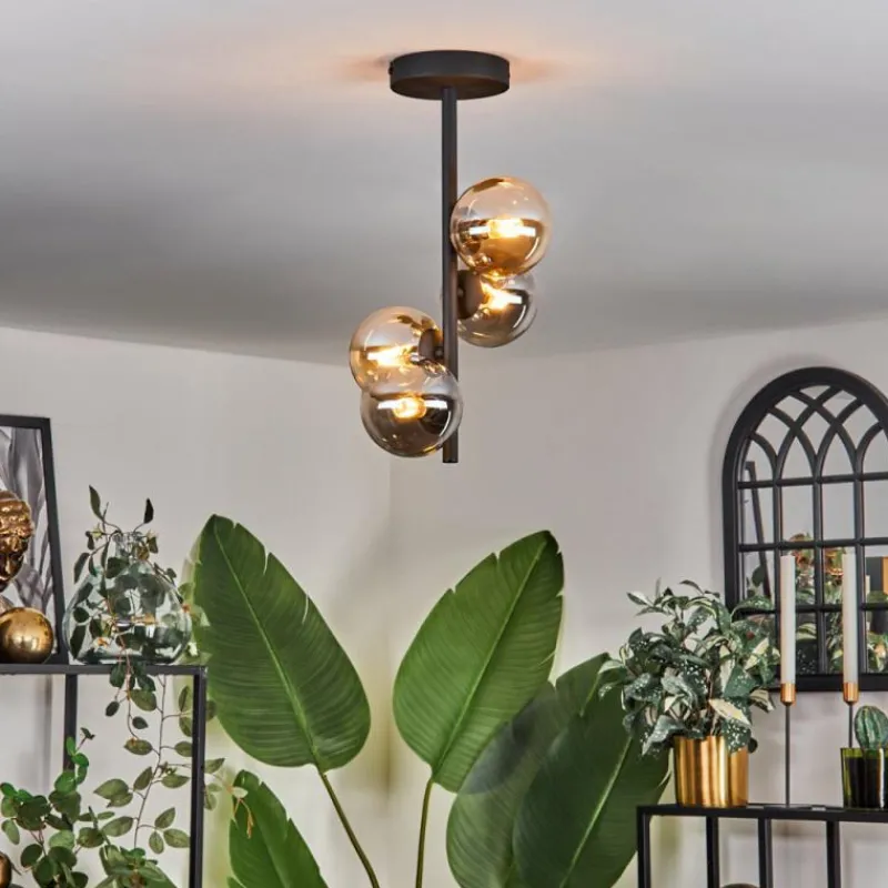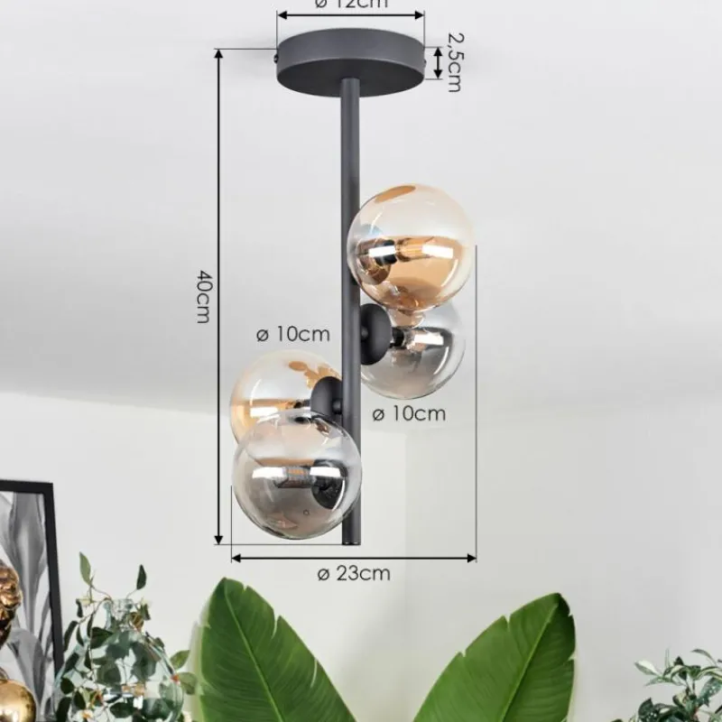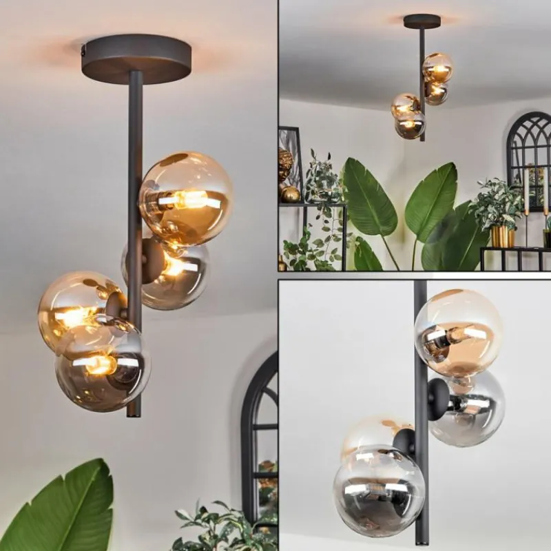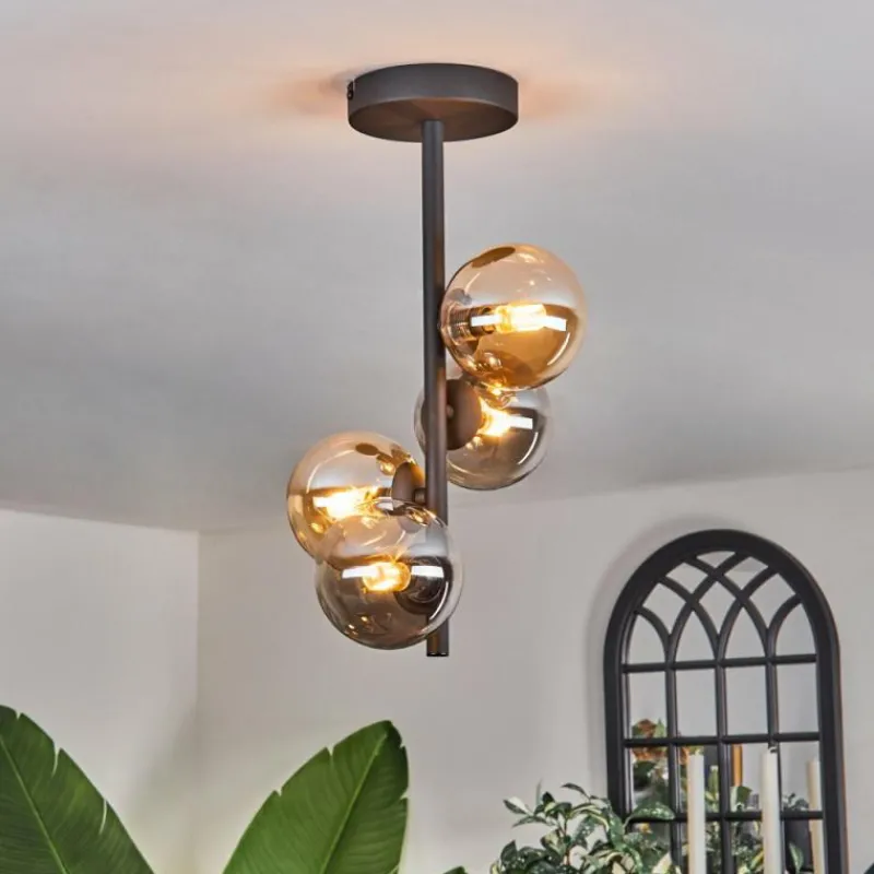 hofstein Plafonnier - Verre 10 cm Chehalis Ambre, Fumé, 4 lumières