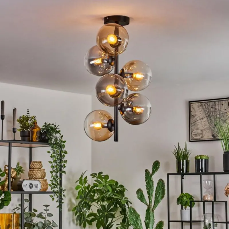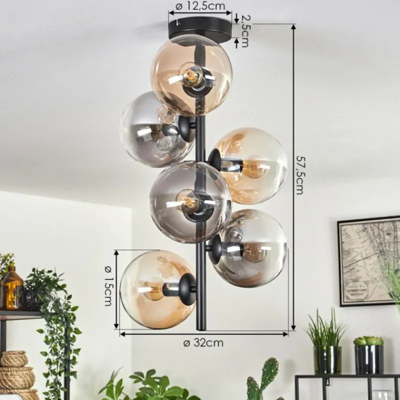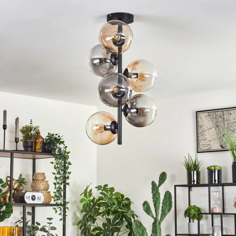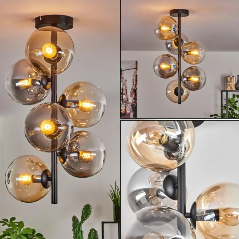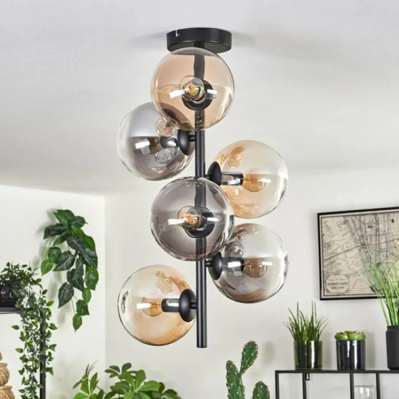 hofstein Plafonnier - Verre 15 cm Gastor Ambre, Clair, Fumé, 6 lumières
