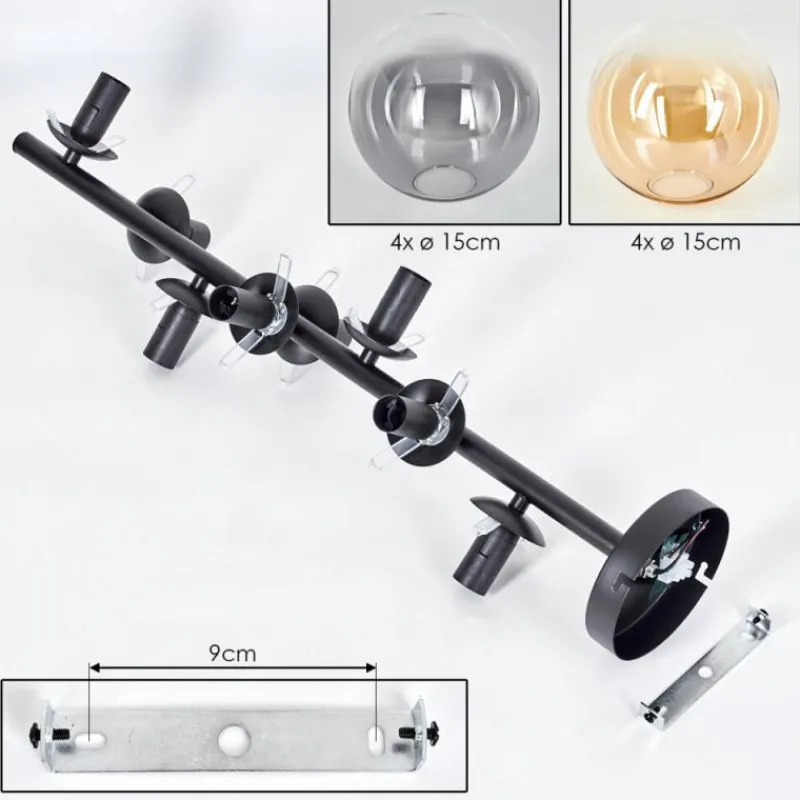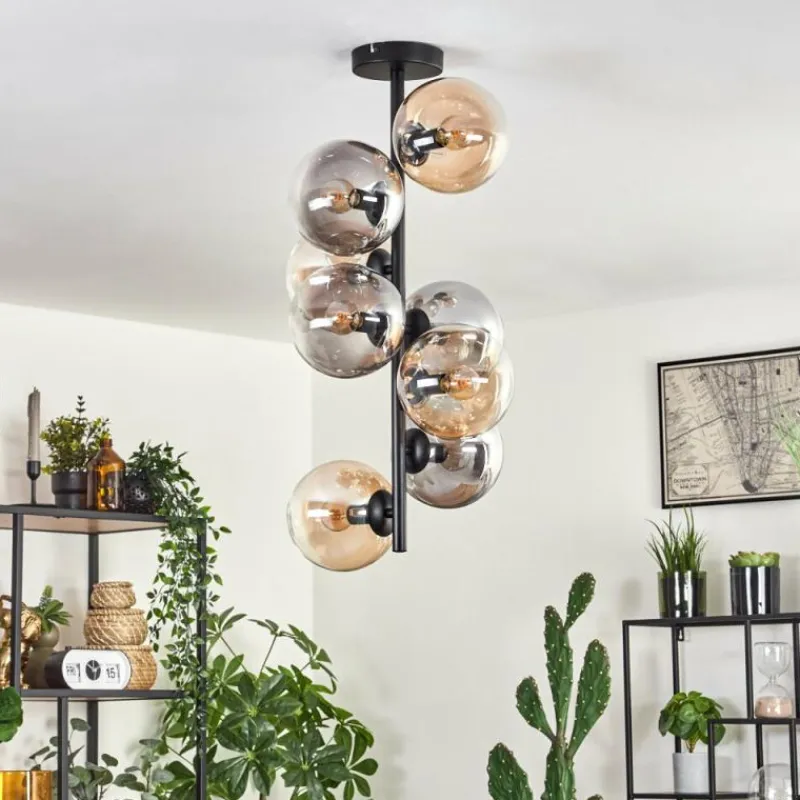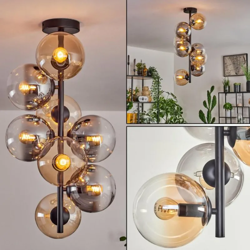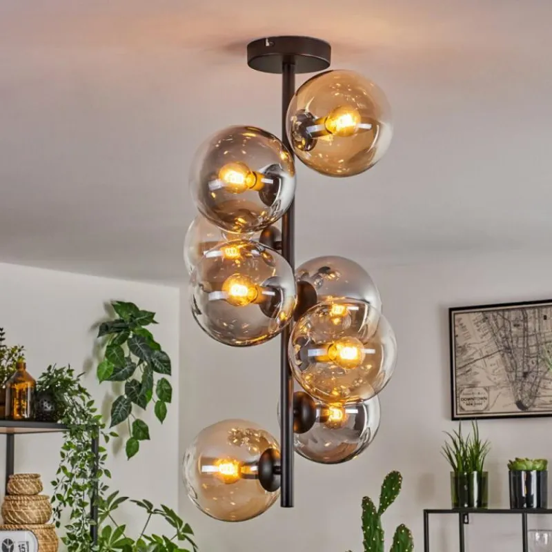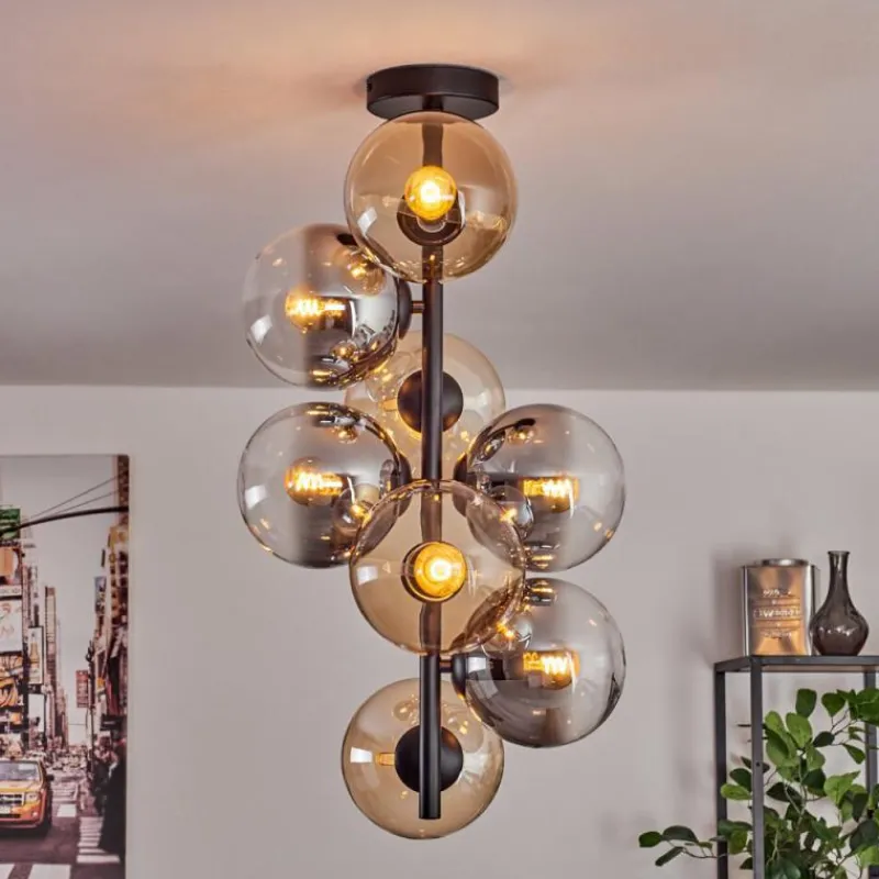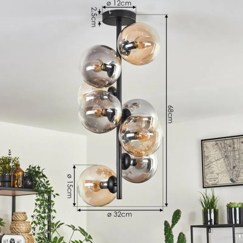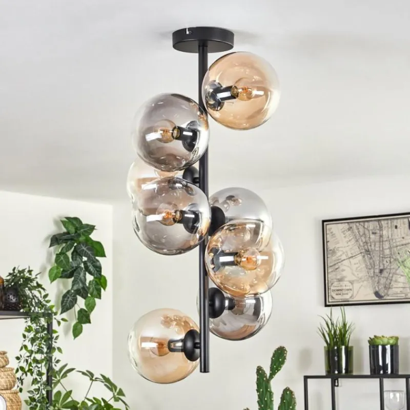 hofstein Plafonnier – Verre 15 cm Gastor Ambre, Clair, Fumé, 8 lumières