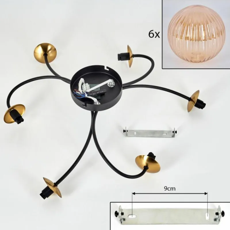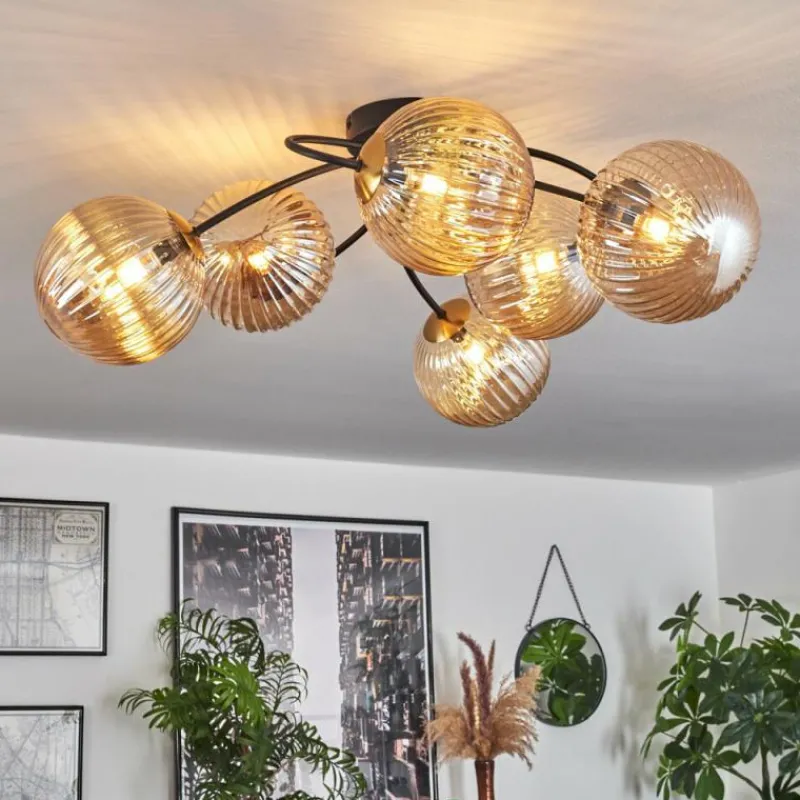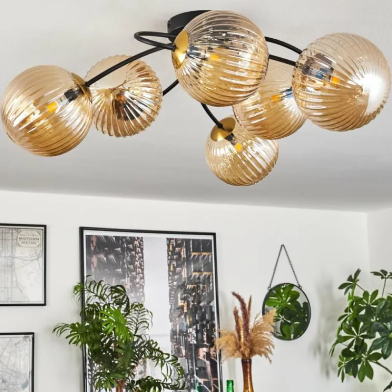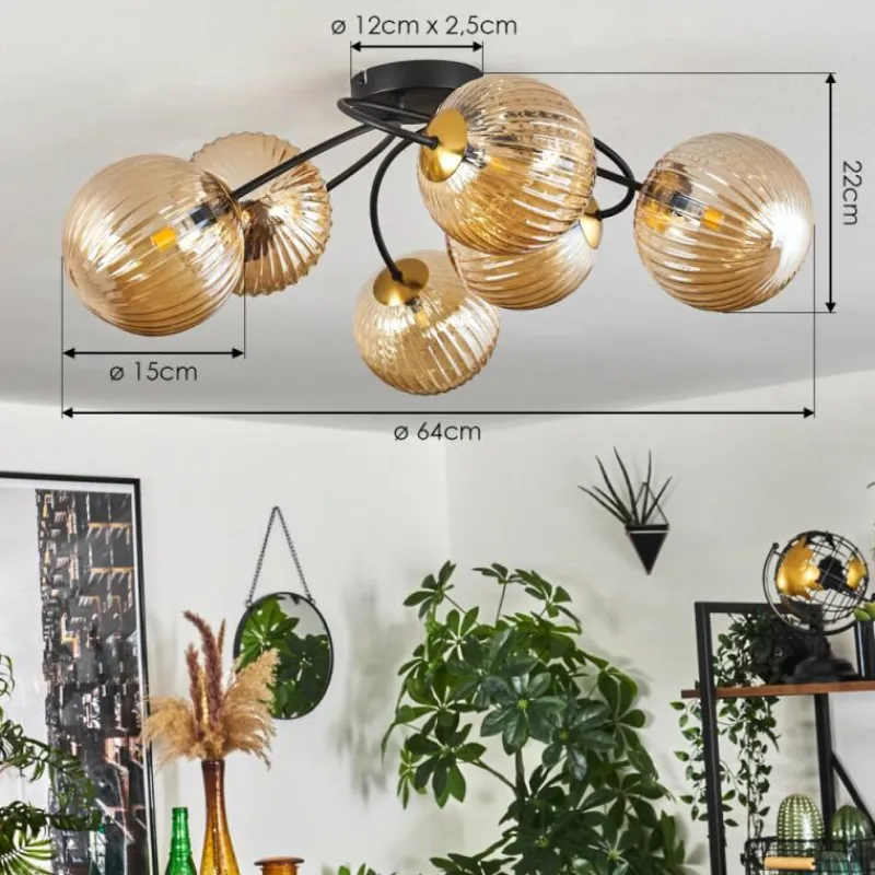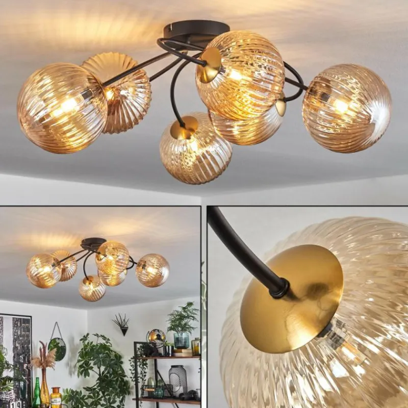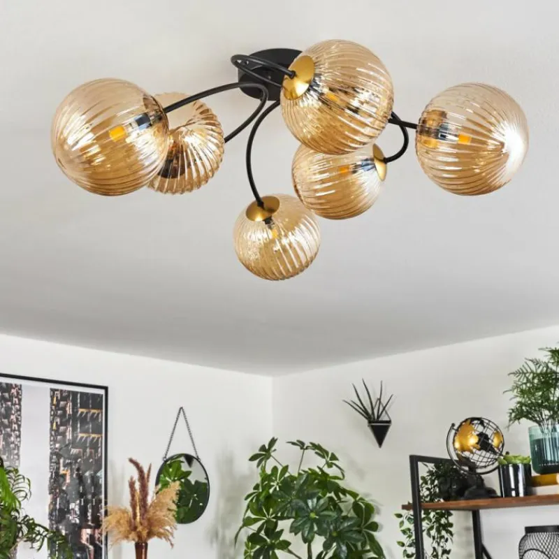 hofstein Plafonnier - Verre Chehalis Or, Noir, 6 lumières
