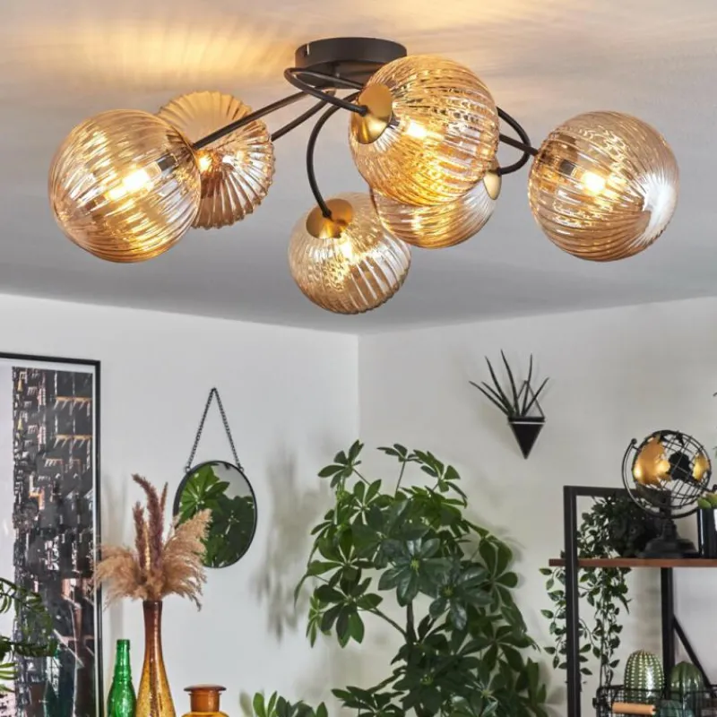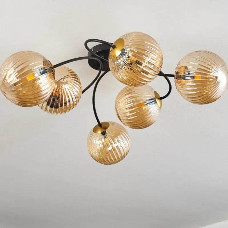 hofstein Plafonnier – Verre Chehalis Or, Noir, 6 lumières