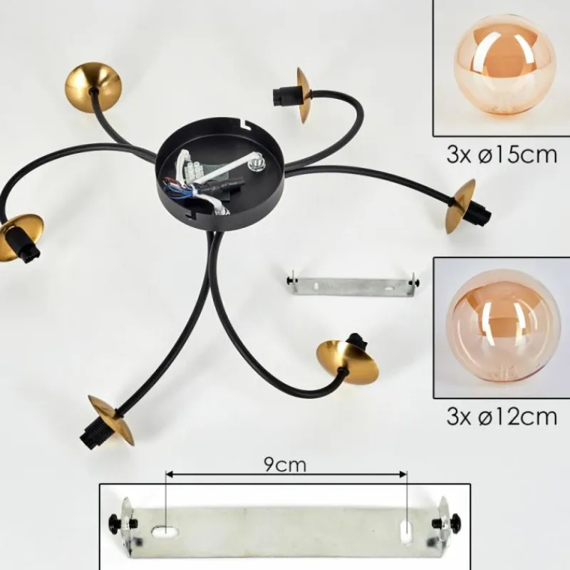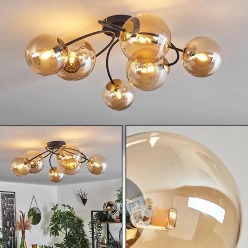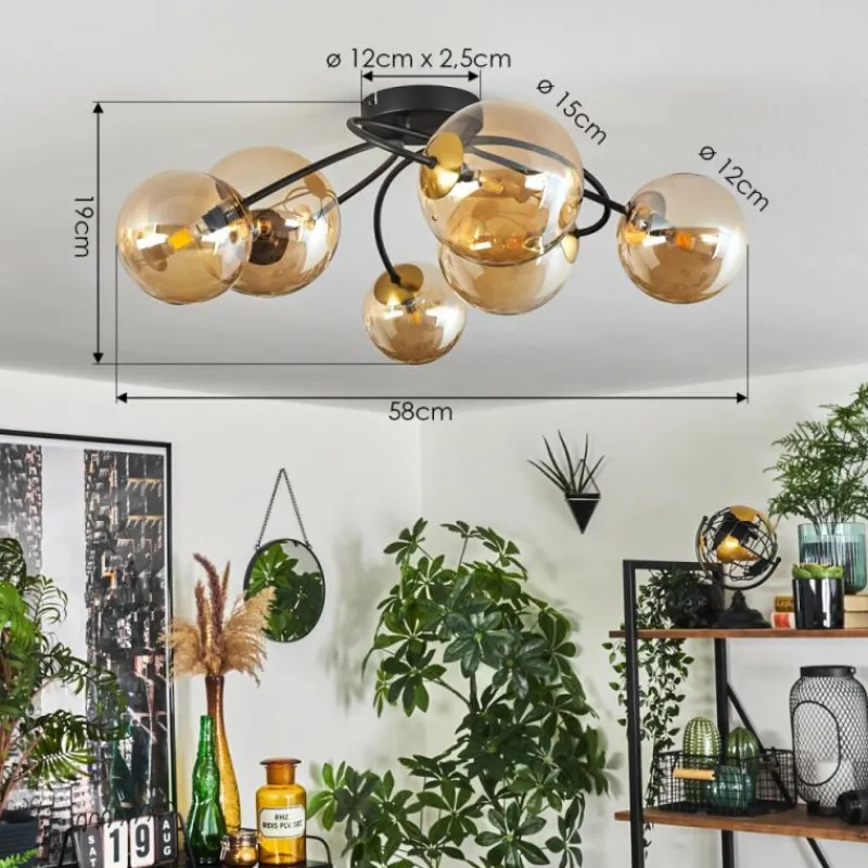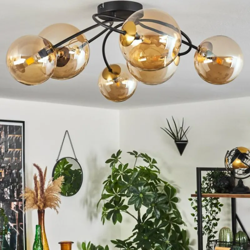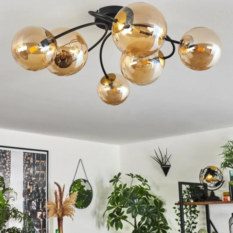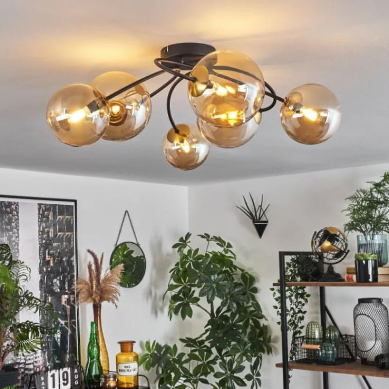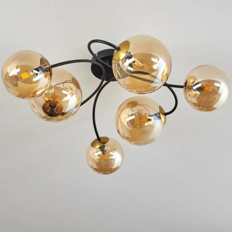 hofstein Plafonnier - Verre Chehalis Or, Noir, 6 lumières