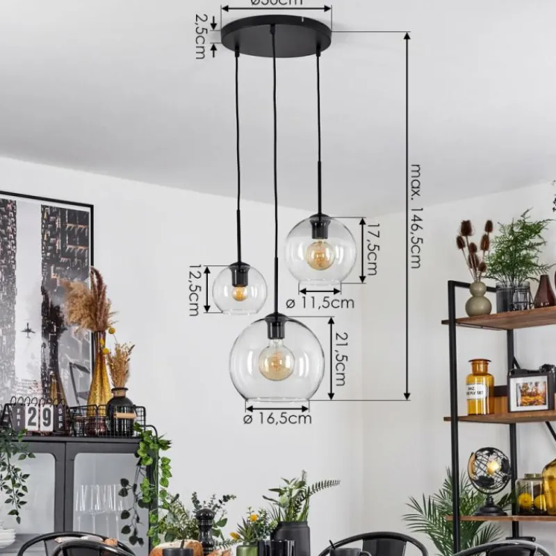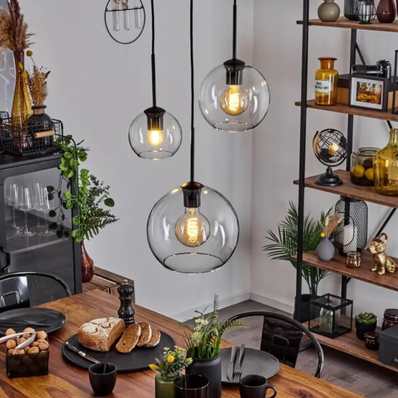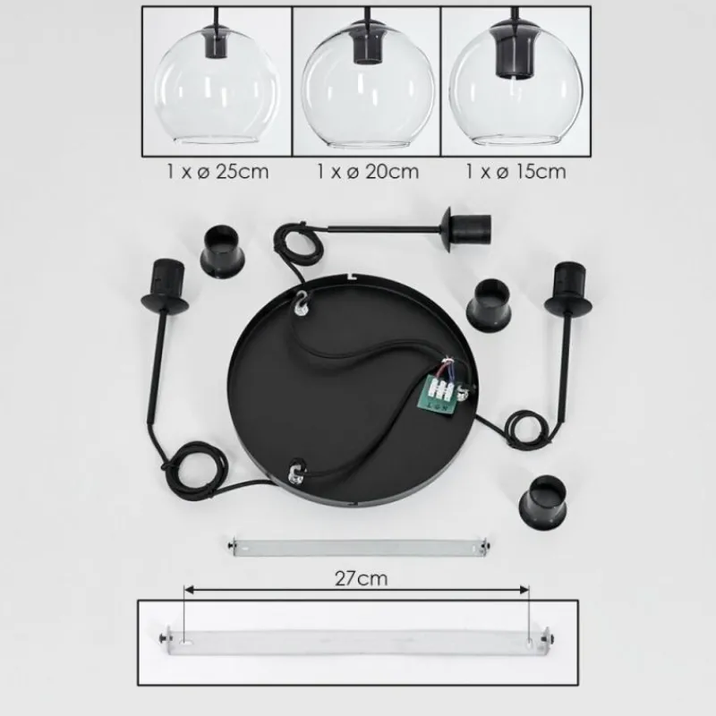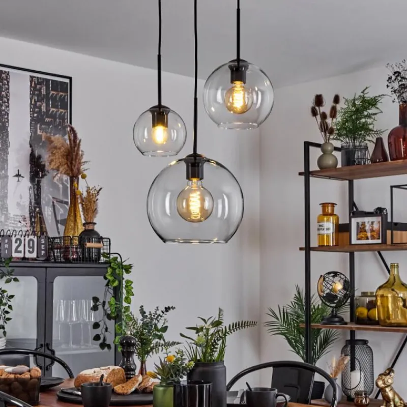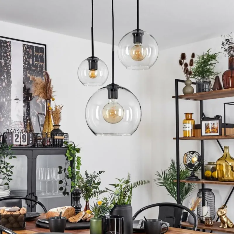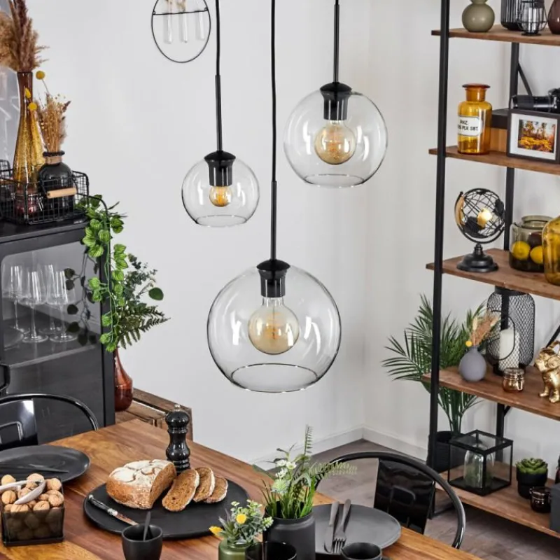 hofstein Suspension Verre 15 cm, 20 cm, 25 cm Koyoto Clair, 3 lumières