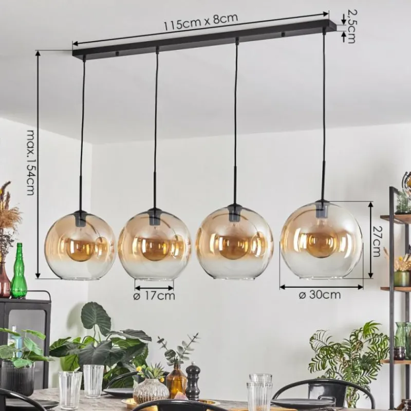 hofstein Suspension - Verre 30 cm Koyoto Ambre, Clair, 4 lumières