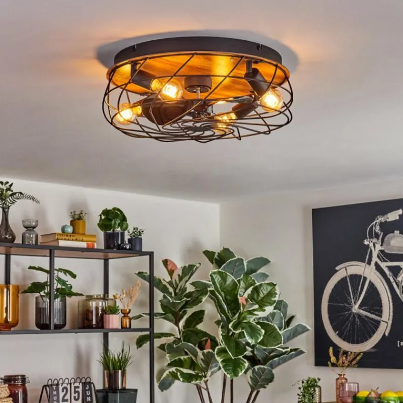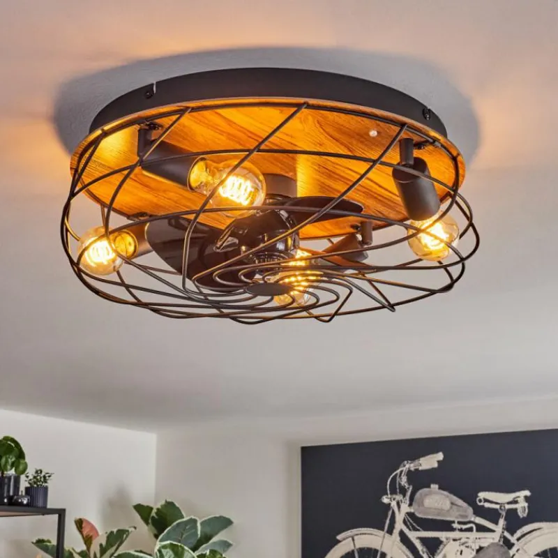 hofstein Tourais Plafonnier, Ventilateur de plafond lumineux LED Couleur bois, Noir, 4 lumières, Télécommandes