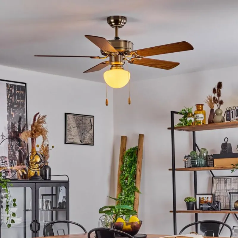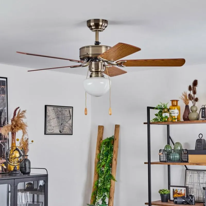 hofstein Ventilateur de plafond Apiao Brun, Brun clair, Couleur bois, Argenté, 1 lumière