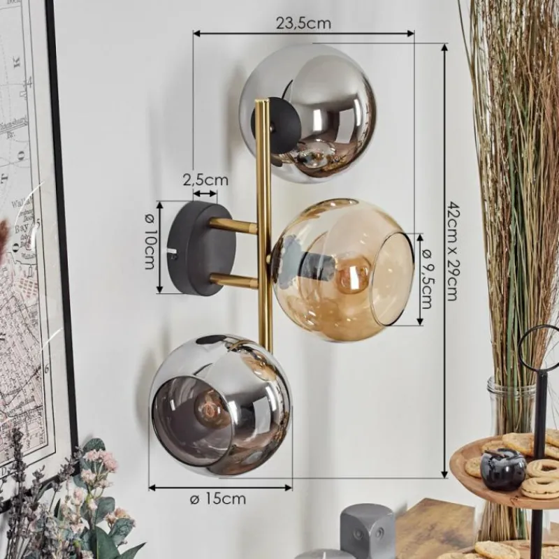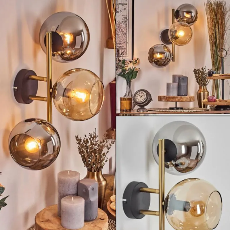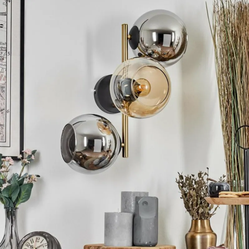 Lampes Dorées-hofstein Koyoto Boule lumineuse, Applique murale Or, Noir, 3 lumières