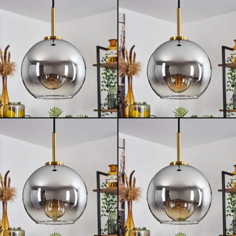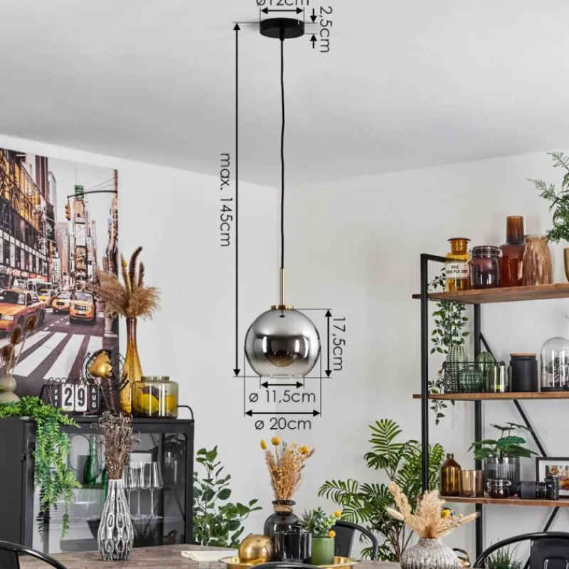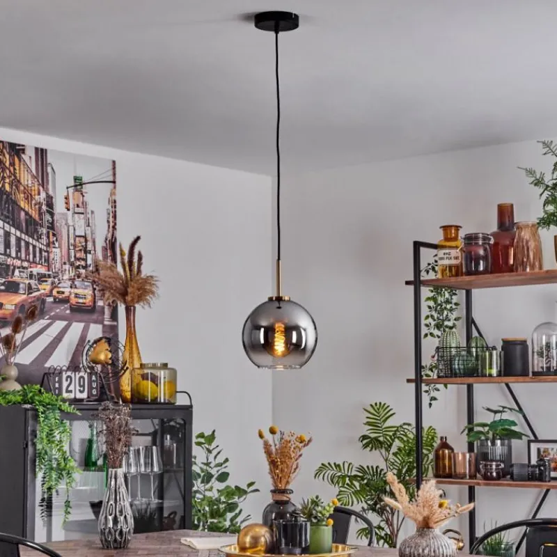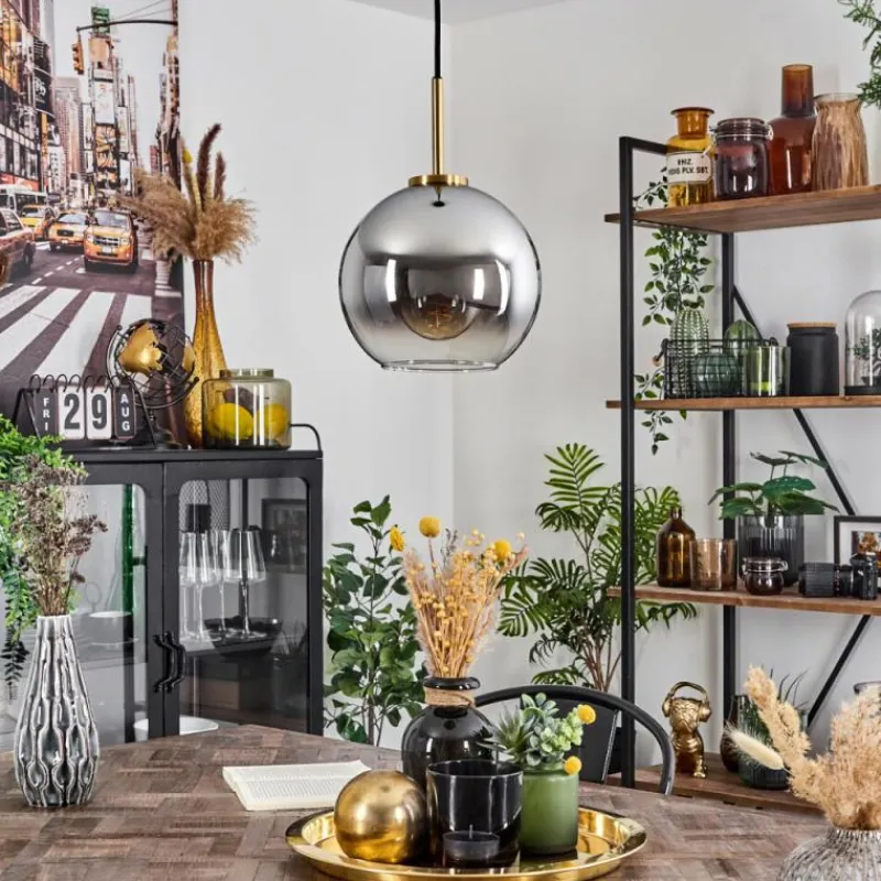 Lampes Dorées-hofstein Suspension Verre 20 cm Koyoto Or, Noir, 1 lumière