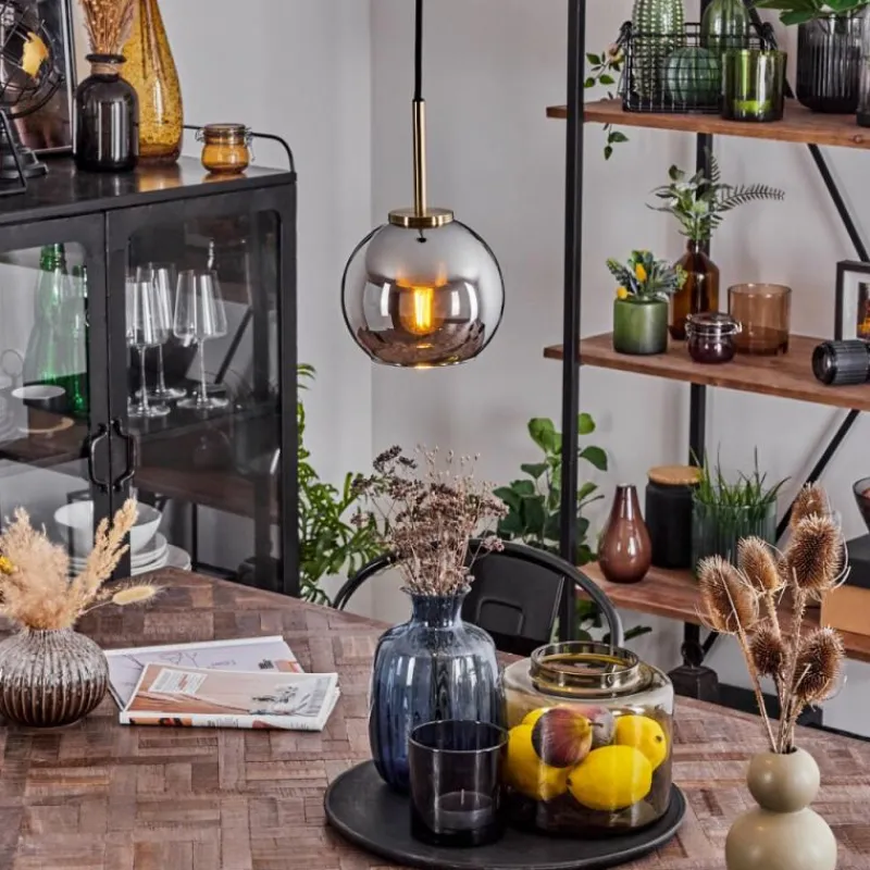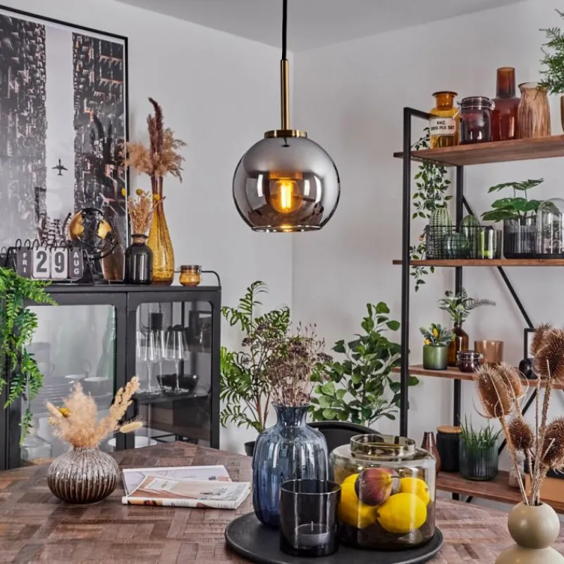 Suspension Verre Fumé-hofstein Suspension Verre 15 cm Koyoto Vieux laiton, 1 lumière