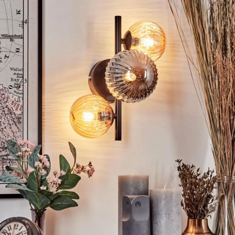 hofstein Applique murale – Verre 10 cm, 12 cm Chehalis Ambre, Fumé, 3 lumières
