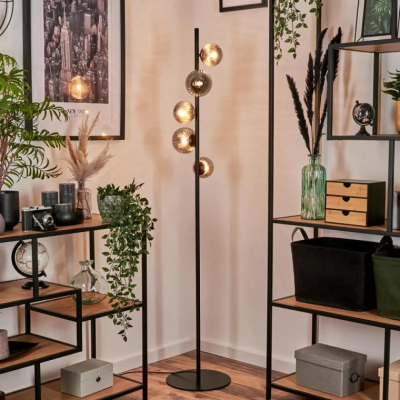 hofstein Lampadaire – Verre 10 cm, 12 cm Remaisnil Fumé, 5 lumières