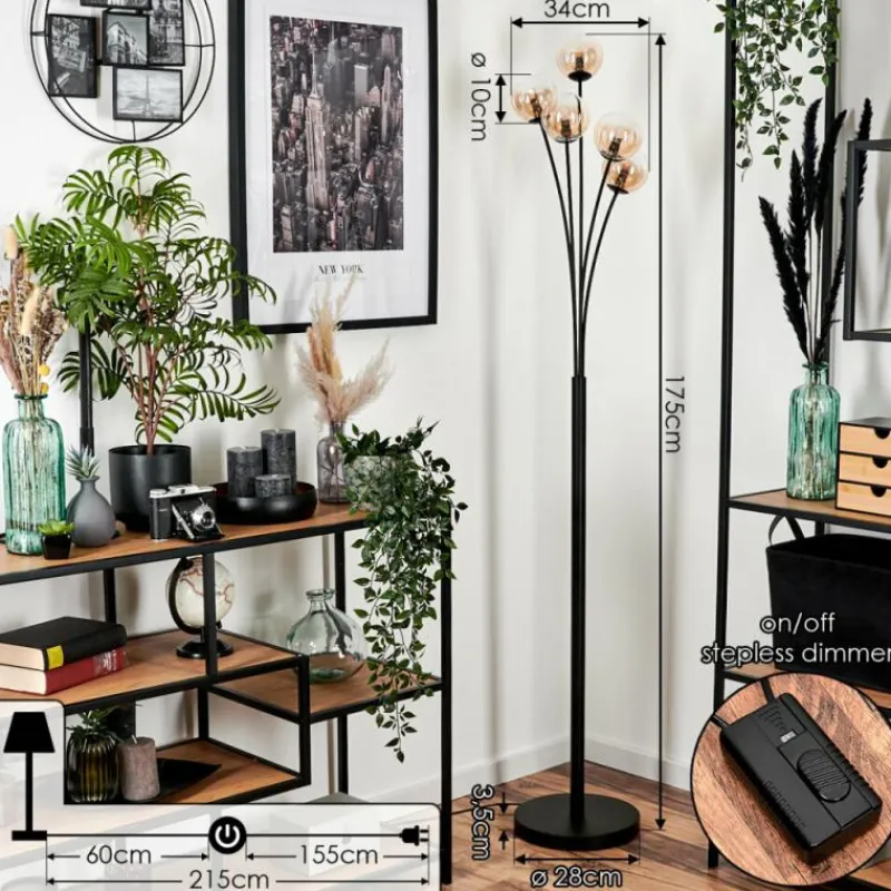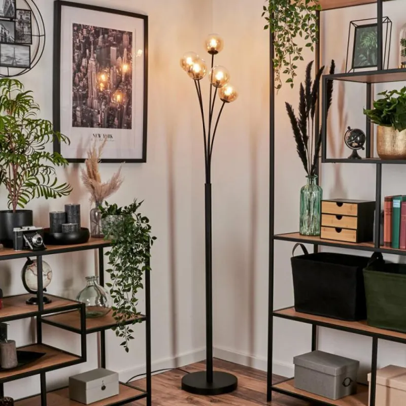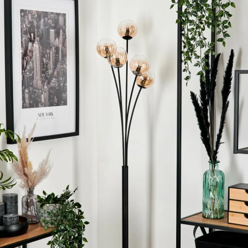 hofstein Lampadaire - Verre 10 cm Bernado Ambre, Clair, 5 lumières