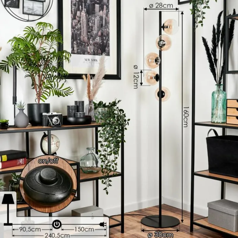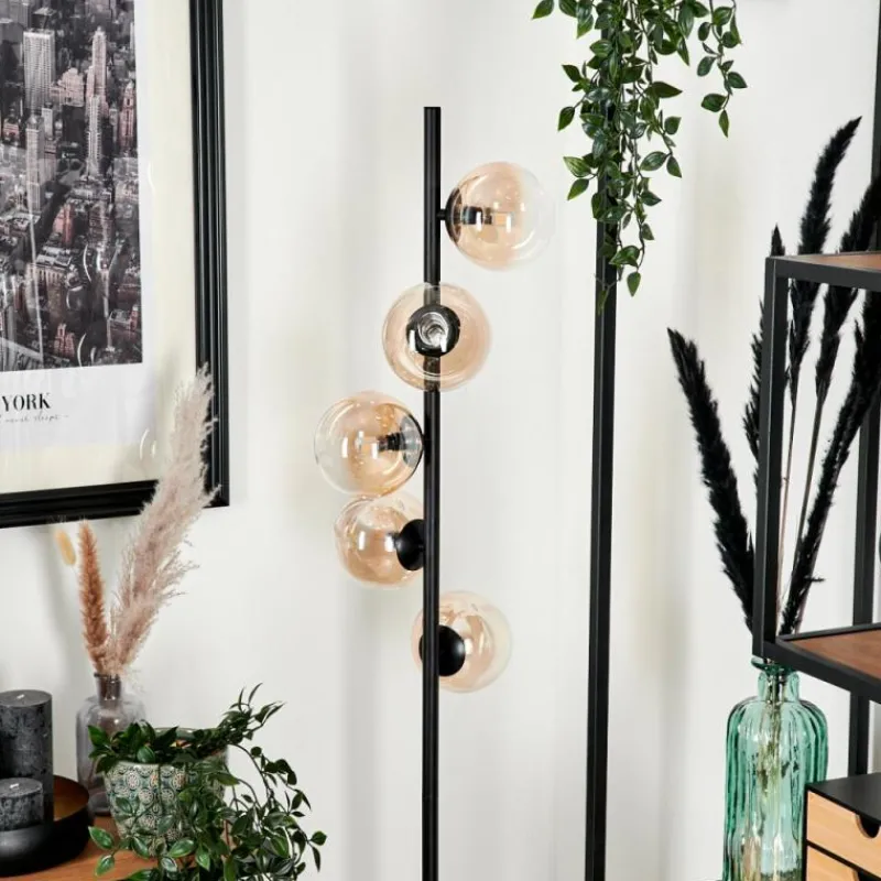 hofstein Lampadaire - Verre 12 cm Remaisnil Ambre, Clair, 5 lumières
