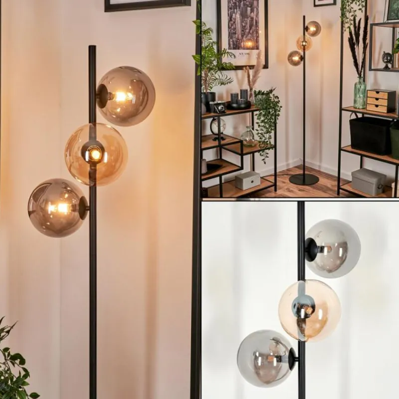 hofstein Lampadaire – Verre 15 cm Remaisnil Ambre, Fumé, 3 lumières