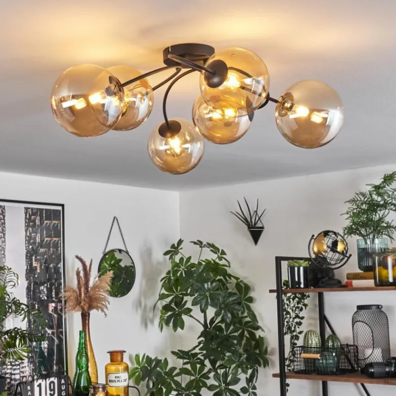 hofstein Plafonnier - Verre Chehalis Ambre, 6 lumières