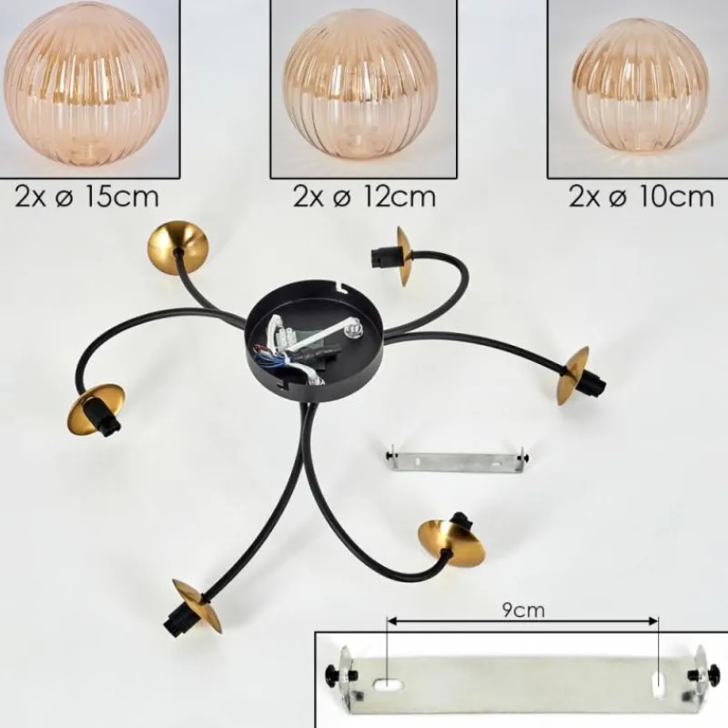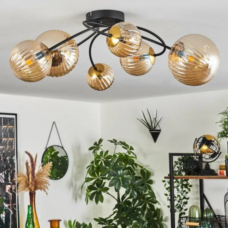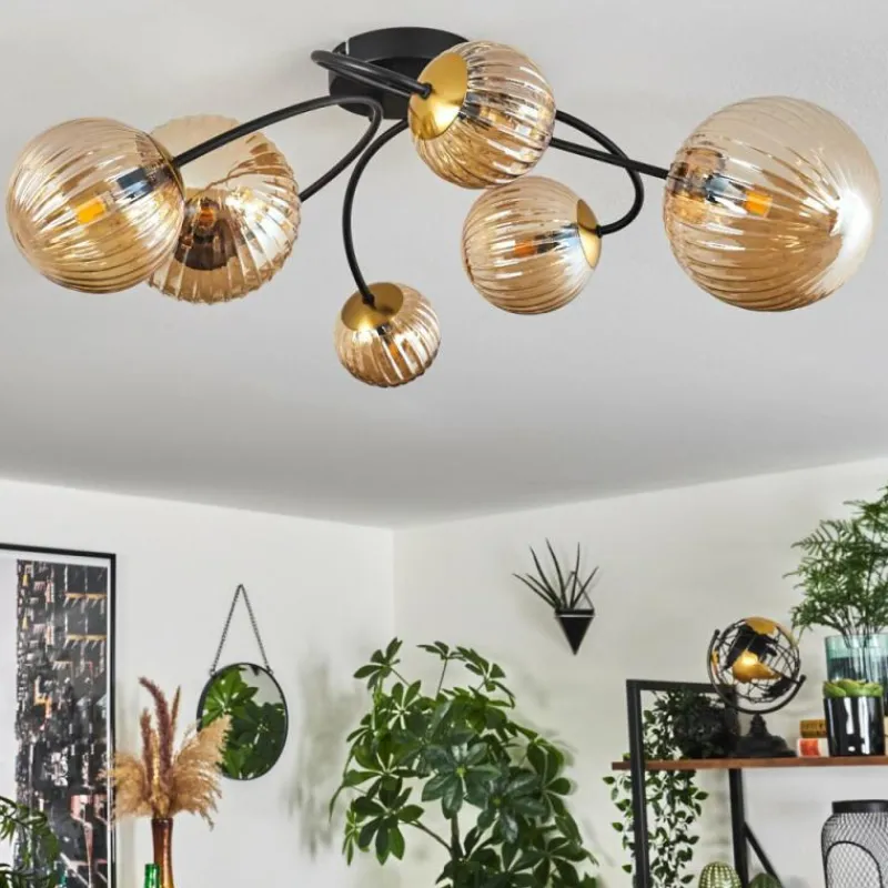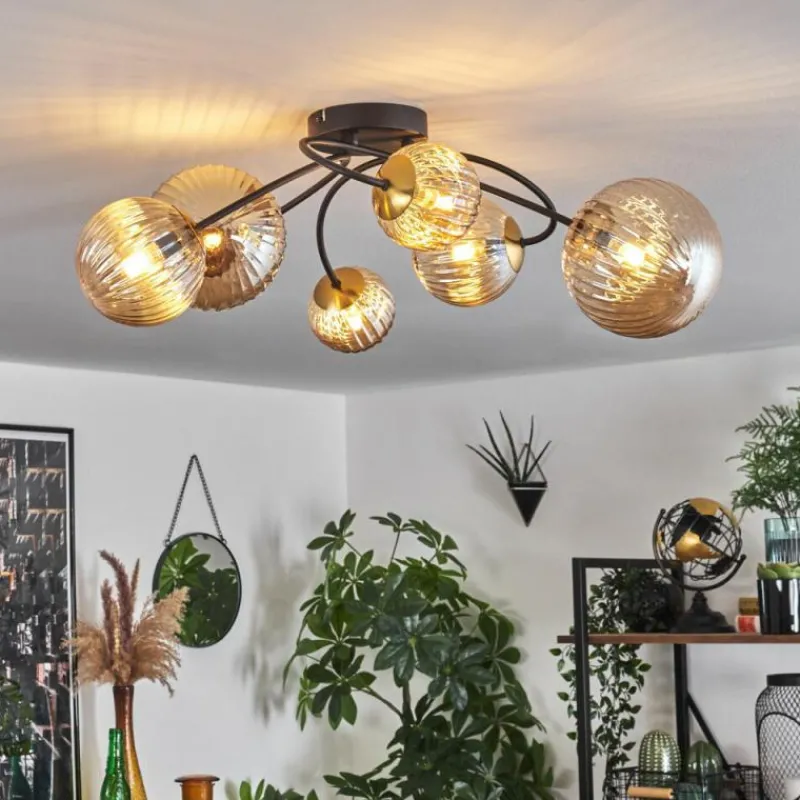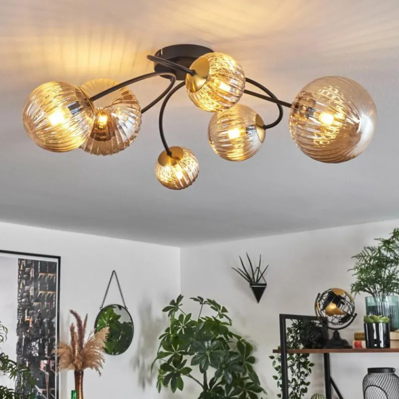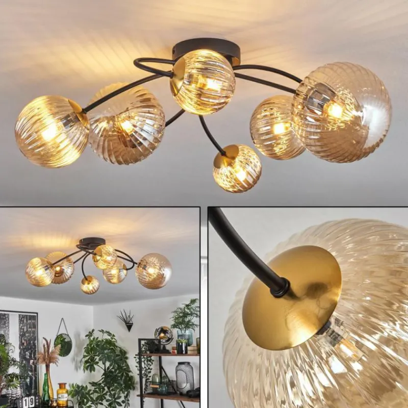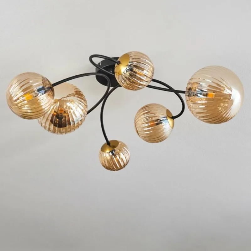 hofstein Plafonnier - Verre Chehalis Or, Noir, 6 lumières
