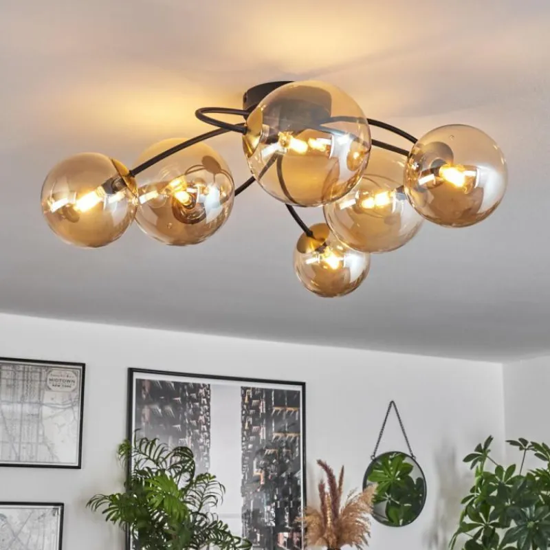 hofstein Plafonnier - Verre Chehalis Or, Noir, 6 lumières