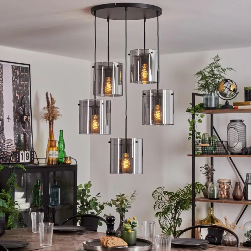 hofstein Suspension – Verre Parane Fumé, 5 lumières