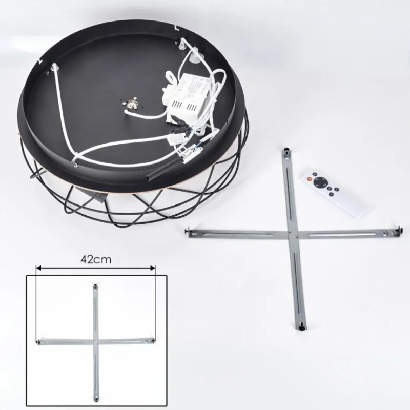 hofstein Tourais Plafonnier, Ventilateur de plafond lumineux LED Couleur bois, Noir, 4 lumières, Télécommandes
