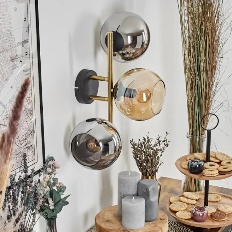 Lampes Dorées-hofstein Koyoto Boule lumineuse, Applique murale Or, Noir, 3 lumières