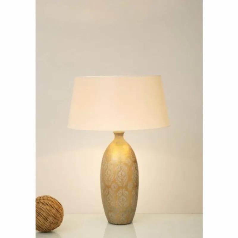 Le corps de cette lampe a un imprimé brocart