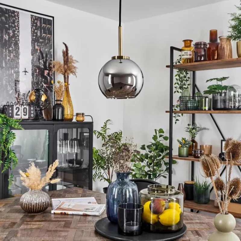 Suspension Verre Fumé-hofstein Suspension Verre 15 cm Koyoto Vieux laiton, 1 lumière