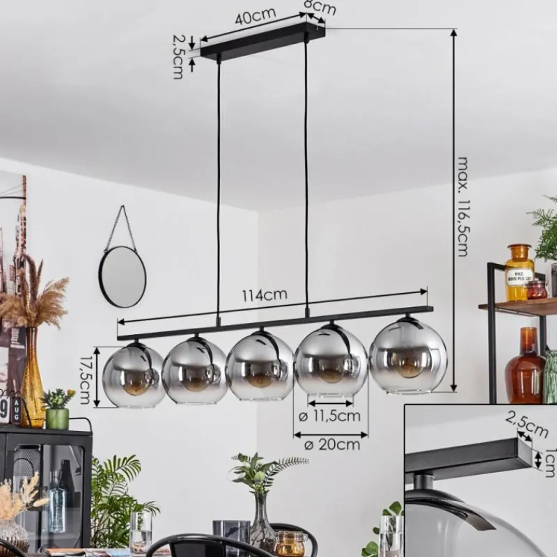 Suspension Verre Fumé-hofstein Suspension Verre 20 cm Koyoto Fumé, 5 lumières