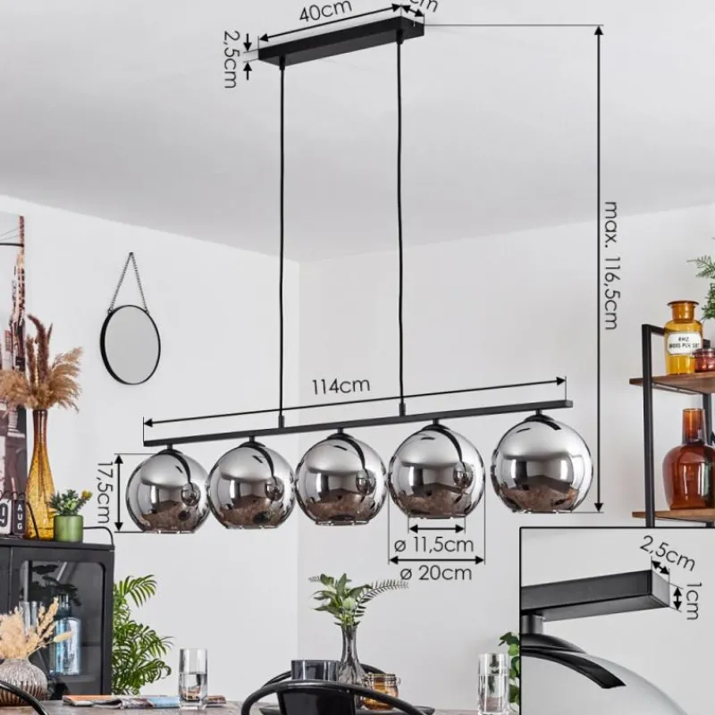 Suspension Verre Fumé-hofstein Suspension Verre 20 cm Koyoto Fumé, 5 lumières